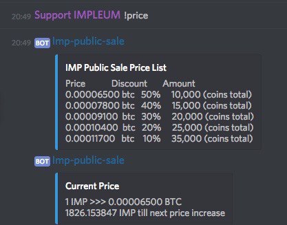 Количество коинов IMP по дисконтной цене ограничено. Узнать цену и доступное для покупки количество IMP можно с помощью команды !price