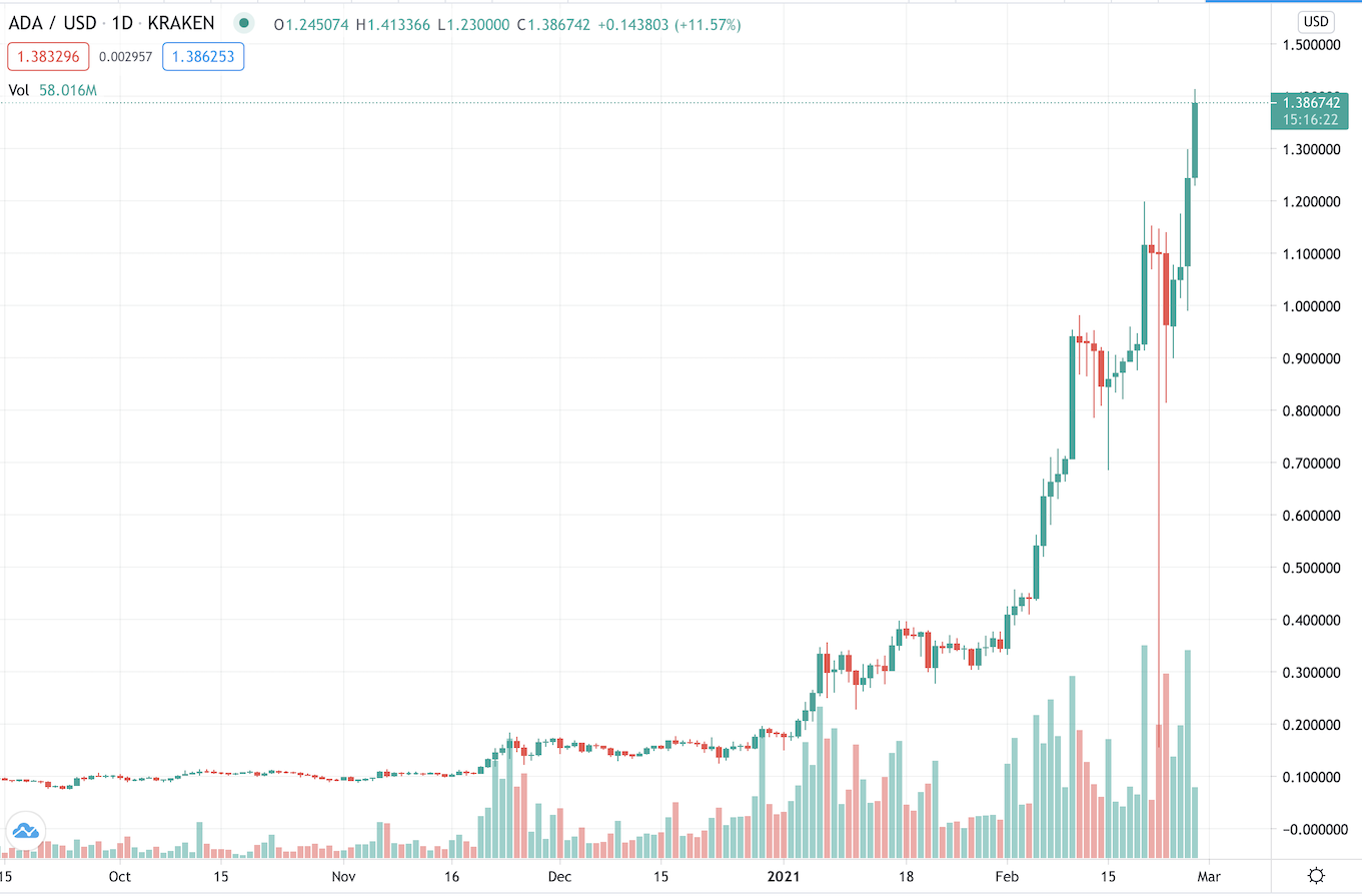 На фоне новостей о проведении обновления Mary цена Cardano взлетела выше $1,30, установив новый исторический максимум.