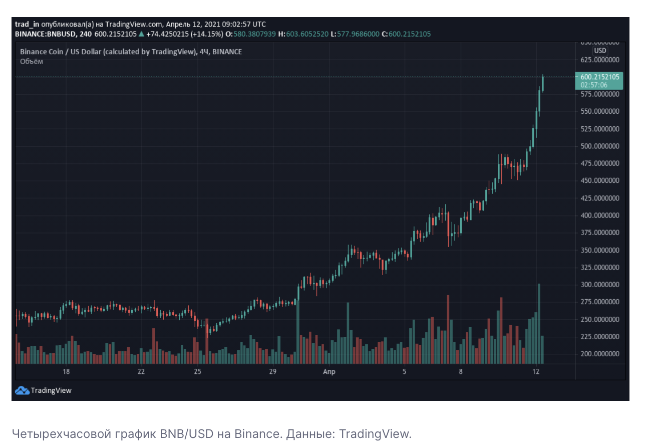 12 апреля токен BNB криптобиржи Binance достиг нового исторического рекорда в $640.