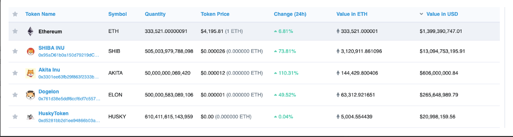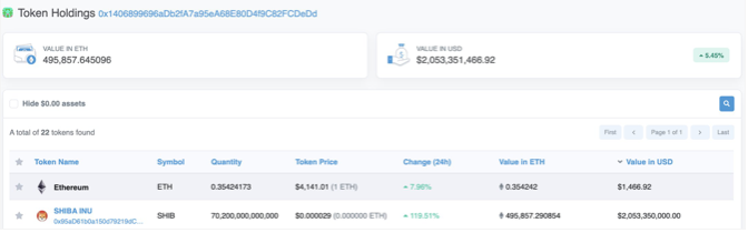 Другой успешный инвестор, вложив в SHIB 37,65 ETH теперь имеет $2,05 млрд.
