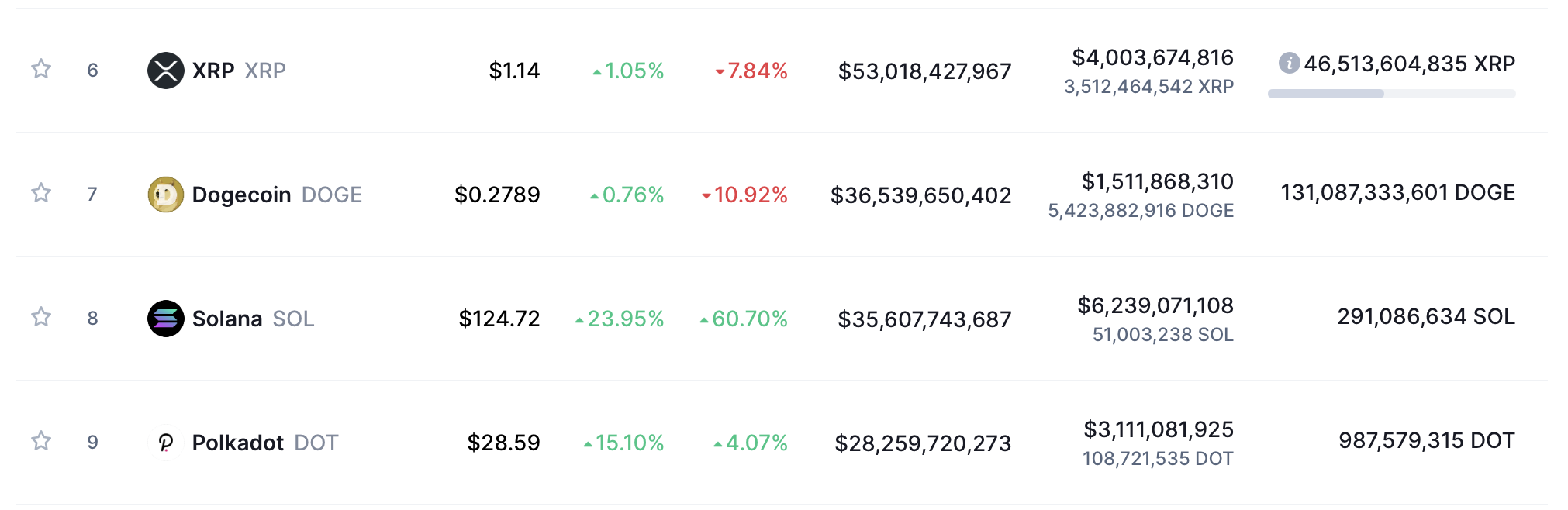 На момент написания SOL торгуется около $124, а максимум был установлен на отметке $125. Solana стала 8й криптовалютой по капитализации, обогнав Polkadot, USDC и Uniswap.