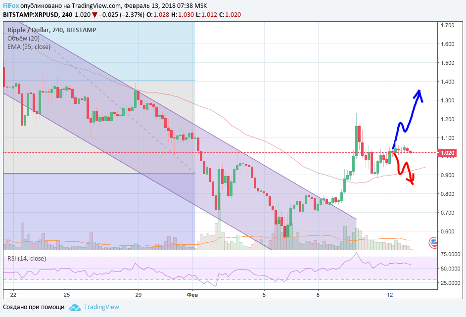 Ripple, в отсутствии вразумительных инструкций от Bitcoin, вчера целый день бился в узком боковом диапазоне около одного доллара за XRP. Сегодня при отсутствии дальнейших сигналов со стороны биткоина, цена на рипл примёрзнет к диапазону вокруг 1.00 USD.