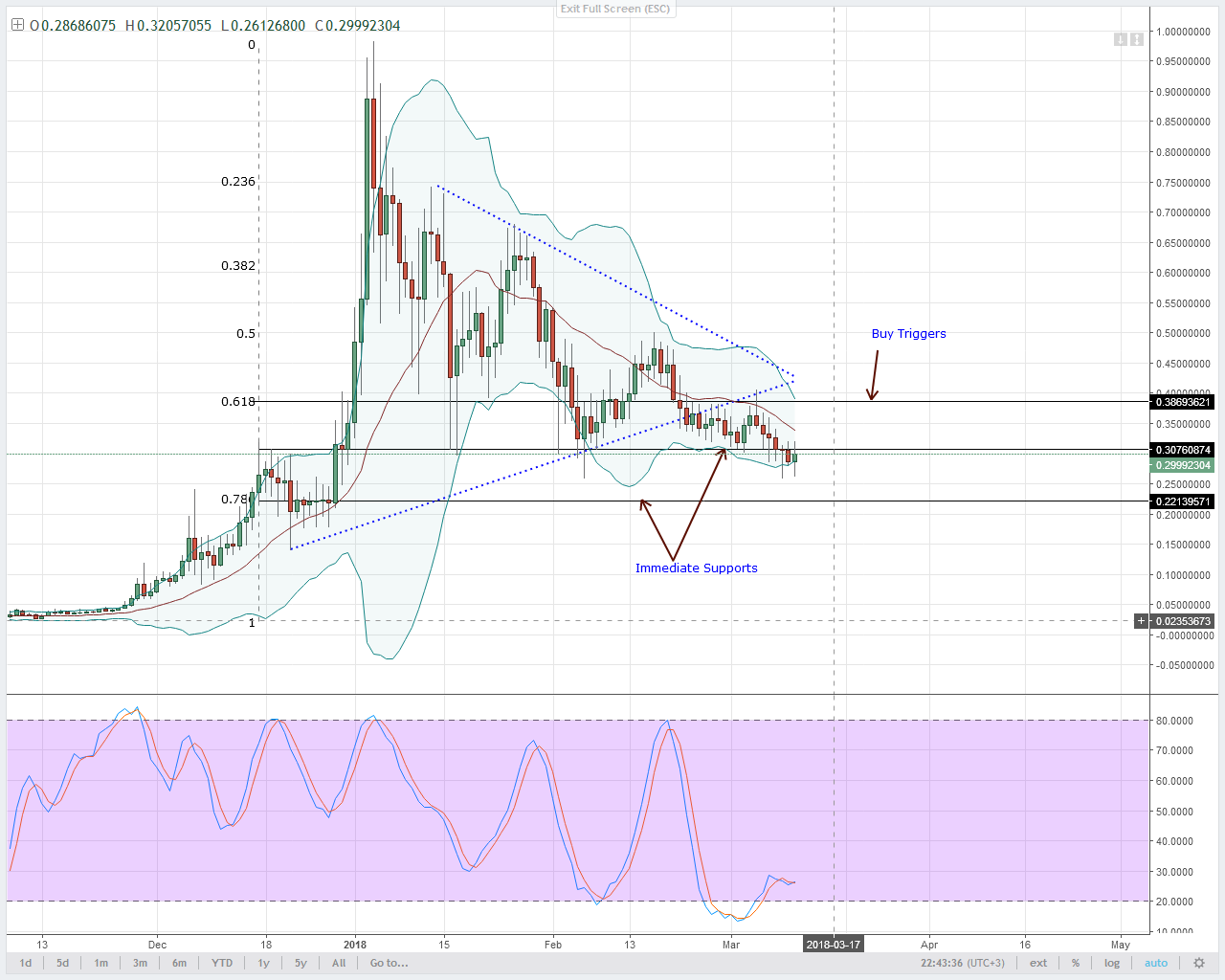 На мой взгляд, пока цена не пробьет отметку $0.35 на дневном тайм-фрейме, мы будем придерживаться медвежьей стратегии и ожидать провала цен ниже $0.25. Мы все еще должны ждать хороших сигналов на покупку/продажу, как и в нашем предыдущем прогнозе.