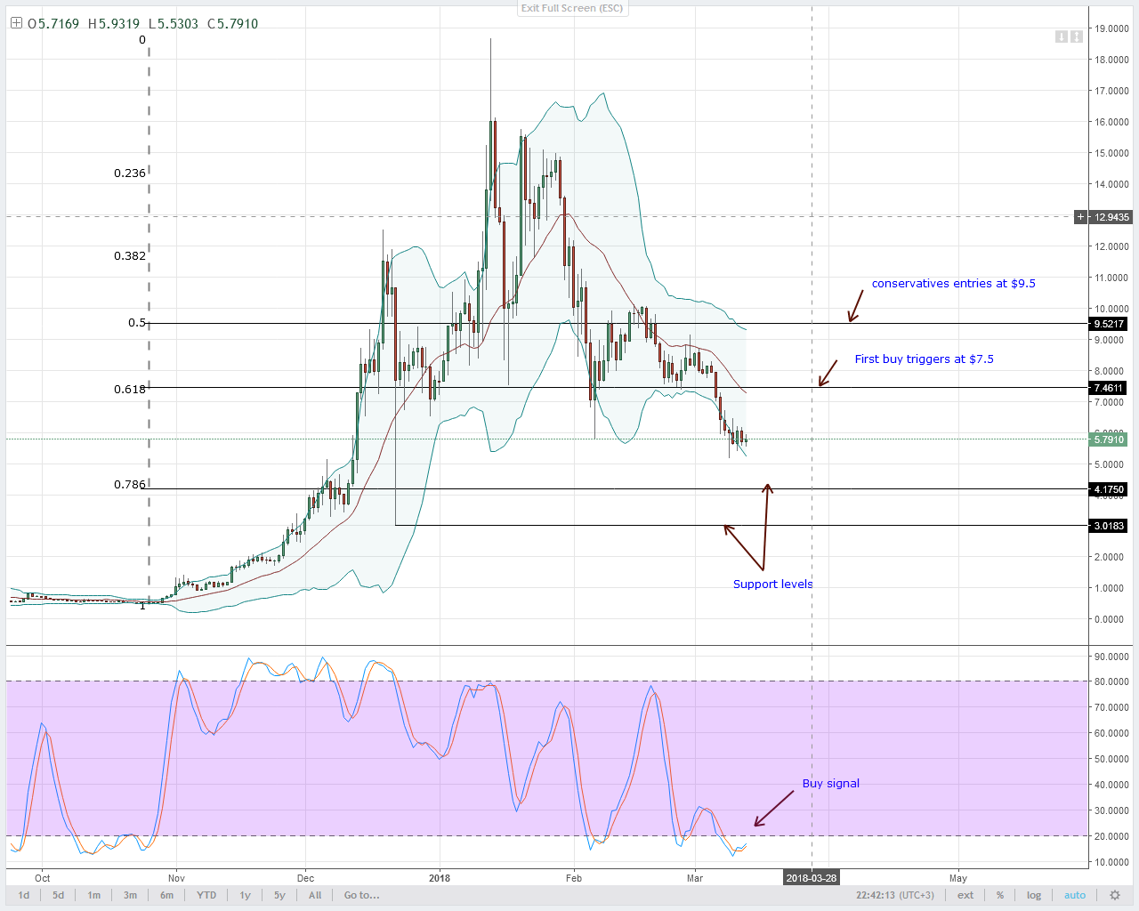 Кроме того, согласно нашему прогнозу, побочные движения цены и бычий импульс стохастика могут быть полезными для покупателей. Однако, это станет действительно полезным только в случае, если цена поднимется выше $6.5