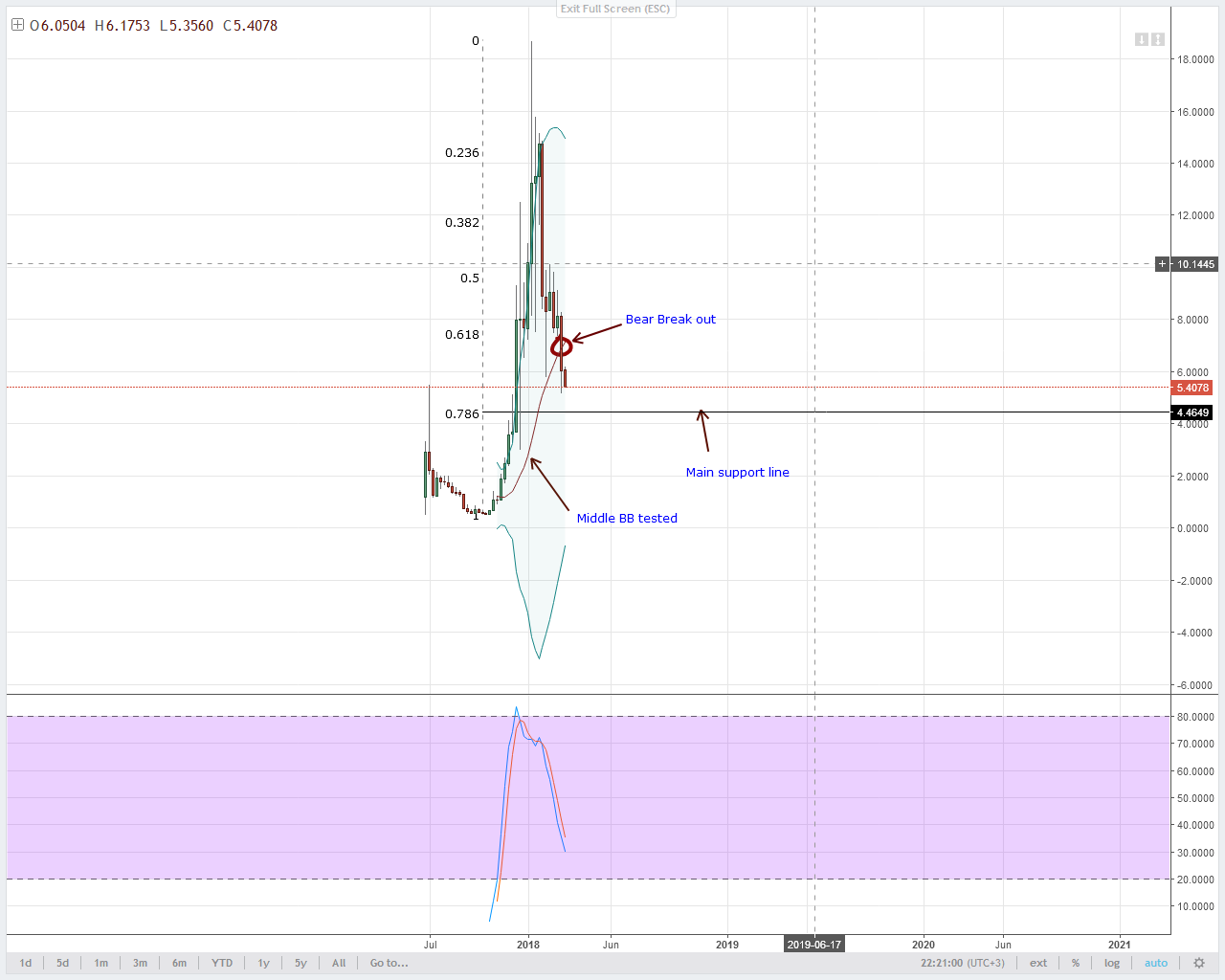 Цены на NEO, EOS, Lumens, LTC и NEM (несмотря на недавние максимумы) резко падают. Скорее всего, эту статью читает трейдер. Моим советом вам будет ликвидировать холдинг DA до тех пор, пока BTC не найдет сильную поддержку на уровне $5000.