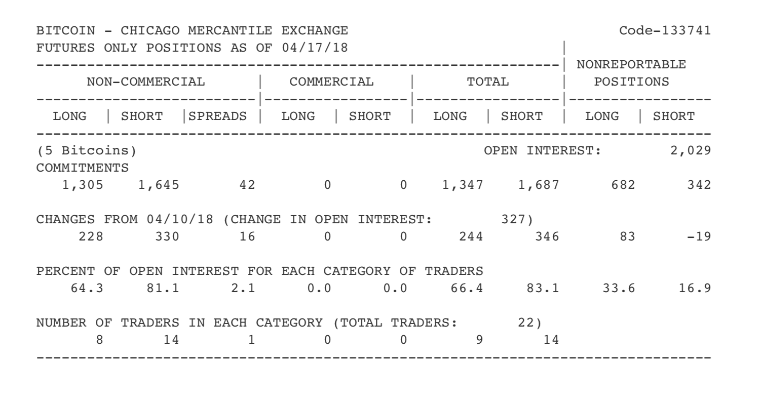 Анализ еженедельных отчетов COT по фьючерсным контрактам на Bitcoin позволяет сравнить изменения настроений трейдеров на рынке. Так как СВОЕ торгует контрактами объёмом в пять раз меньше, чем контракты на СМЕ, то трейдеры СМЕ считаются более крупными. Как правило, их взгляды пользуются доверием розничных торговцев . Постоянно проводится количественный анализ соотношения открытых позиций. Существенное изменение в разнице по открытому интересу между длинными и короткими позициями может говорить о развороте существующего тренда. Сравнение отчетов по двум биржам позволяет проанализировать согласованность в видении цен крупных и средних трейдеров.