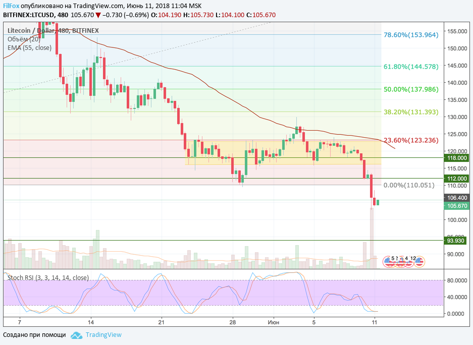 Ltecoin в воскресенье обновил годовой минимум, установленный 6 февраля 2018 года на отметке 106.52 USD до уровня 102.70 USD. Надо полагать, что последнее слово в годовых минимумах ещё не сказано. Следующий минимум может быть в области 93.93 USD.