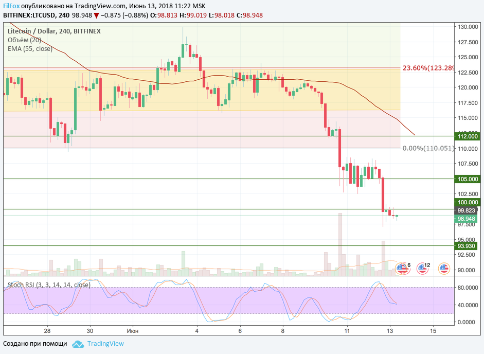 После того, как Litecoin пробил уровень поддержки 105.00 USD и возобновил падение, на психологическом рубеже развернулось эпичное сражение за сто долларов.