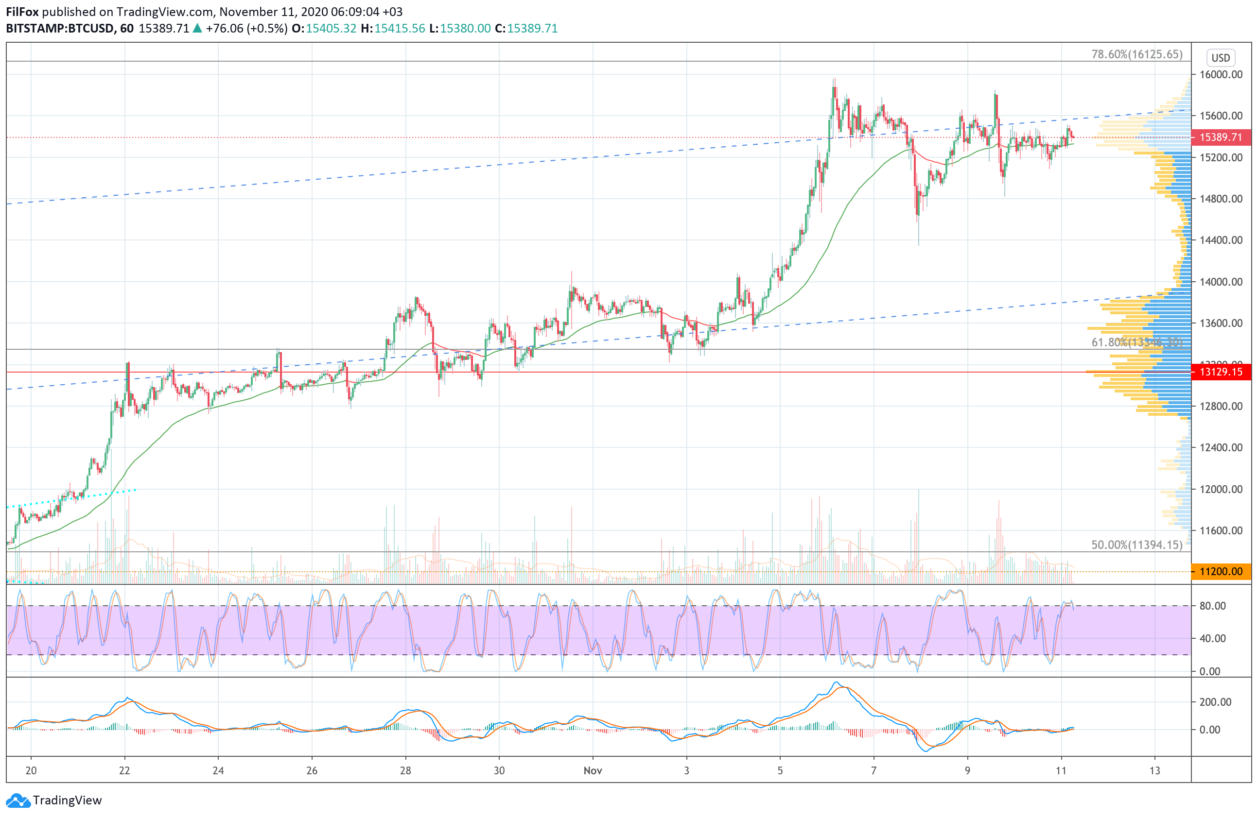 Вчерашние объёмы покупок не позволили продолжить рост, и цена Bitcoin удерживается в боковом диапазоне.