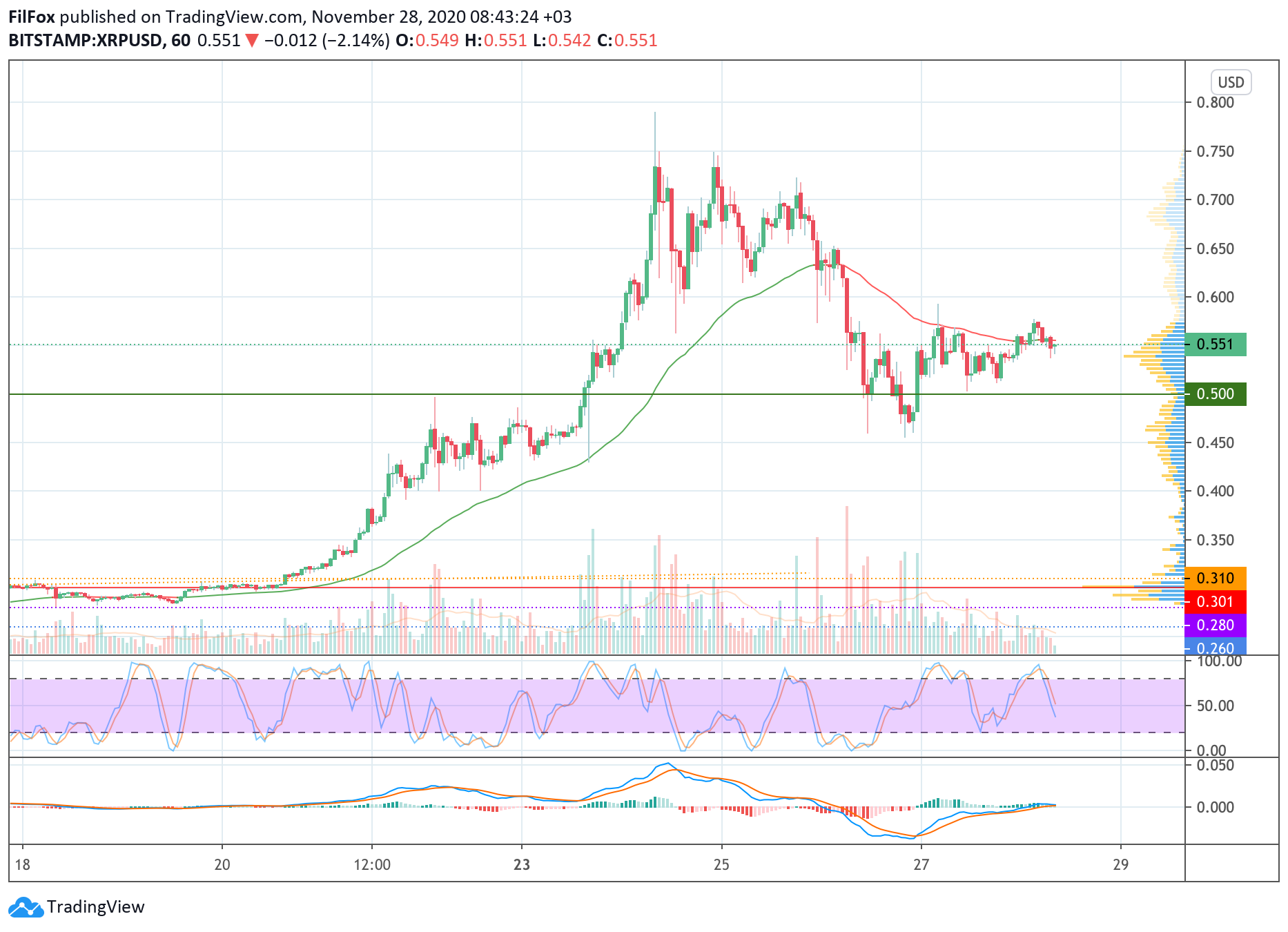 Вчера психологический уровень 0.500 USD ограничил натиск продавцов и цена Ripple до конца дня восстановилась в область средних цен.