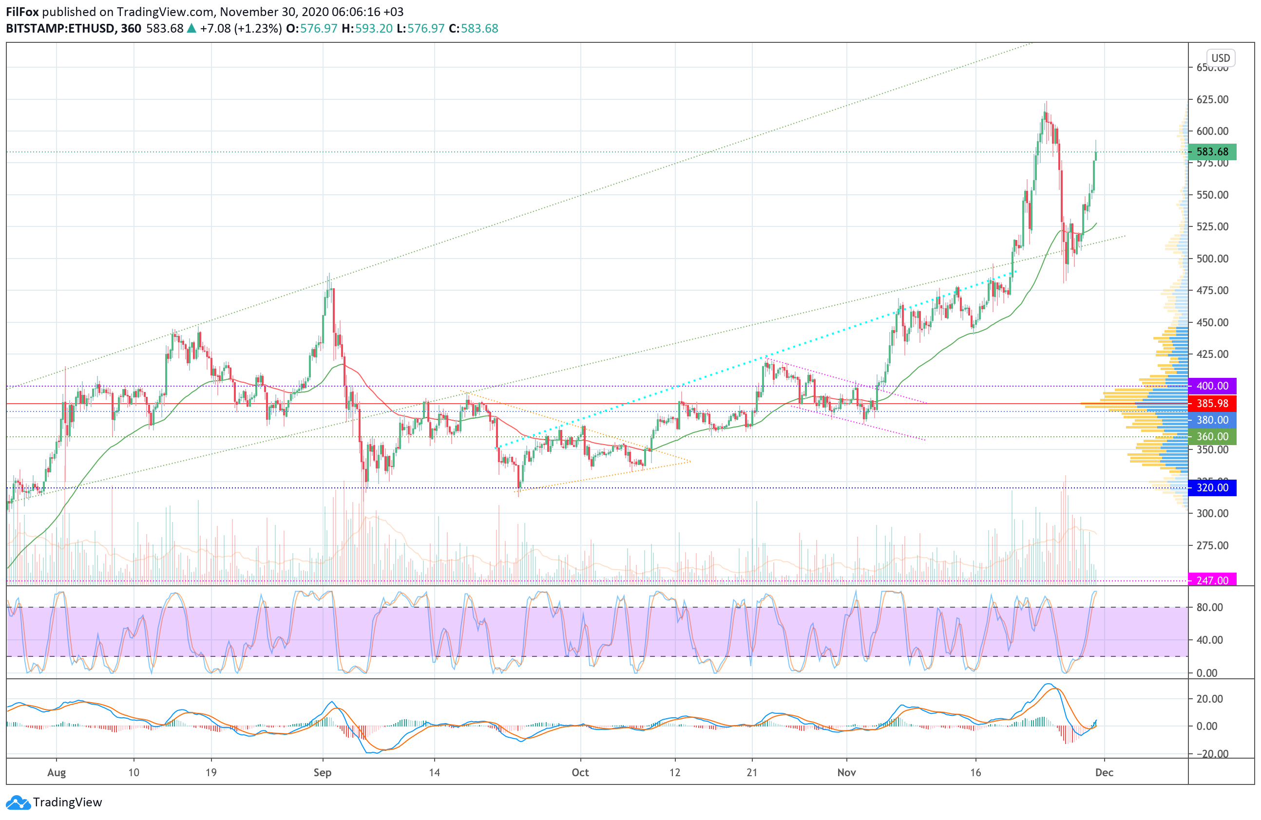 Вчера цена Ethereum продолжила восстановление в зону ноябрьских максимумов. Смогут ли быки возобновить забег?