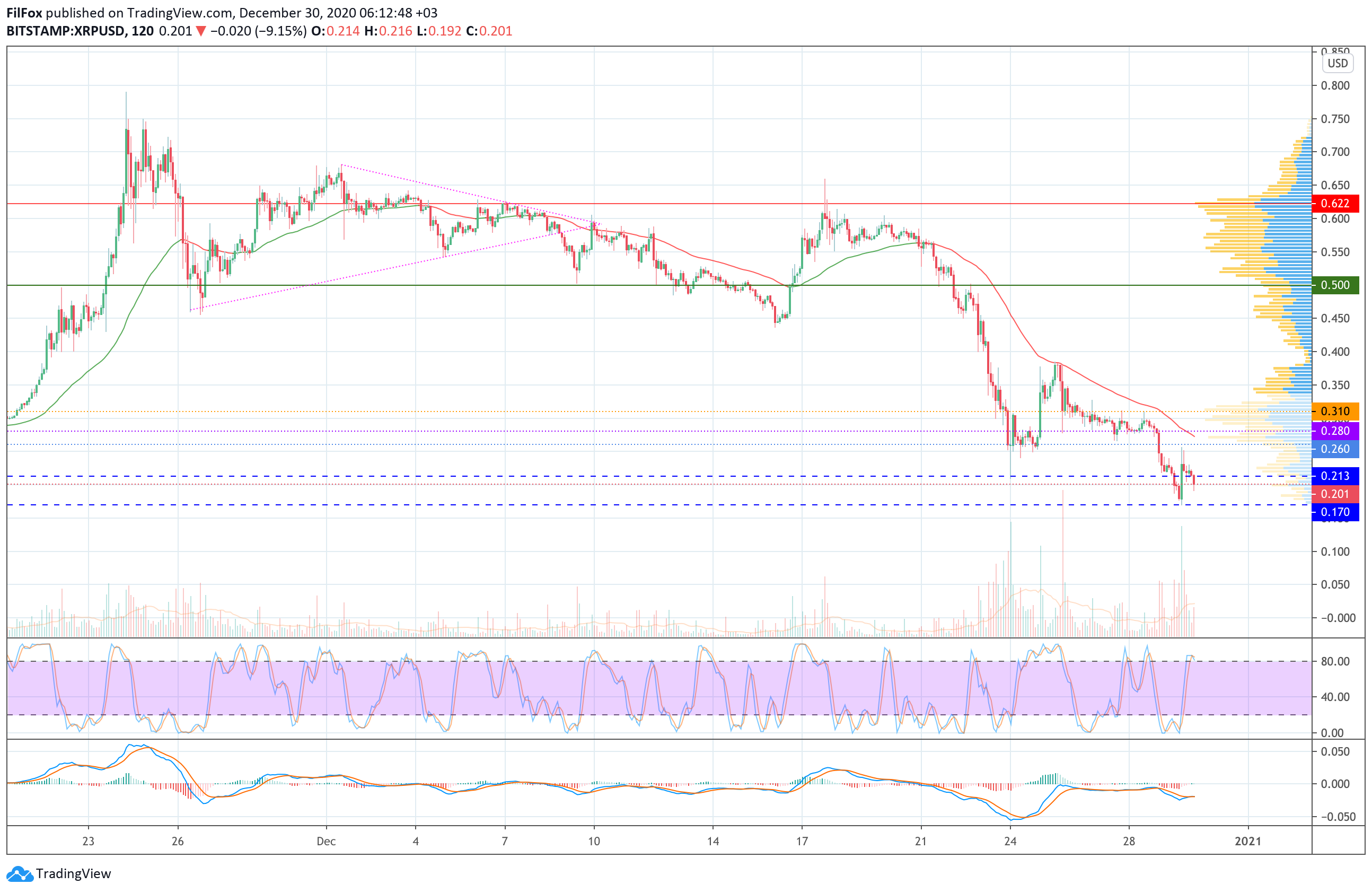 Цена Ripple вчера протестировала поддержку 0.170 USD, обновив в этой точке декабрьский минимум.