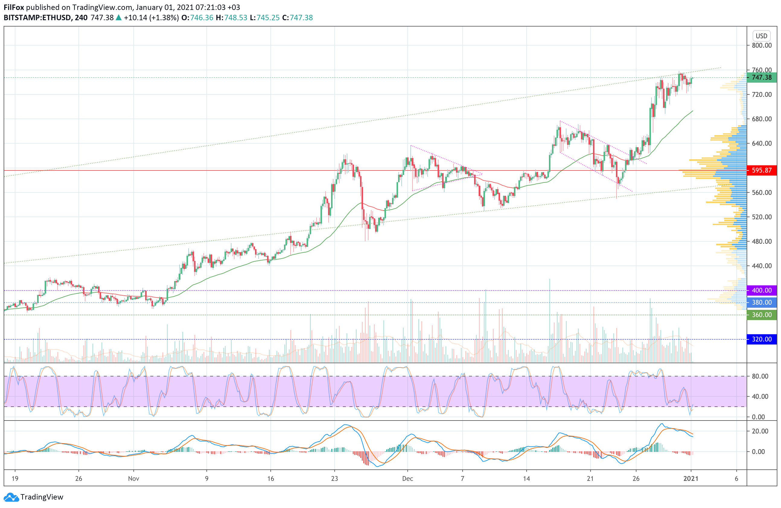 В течение дня пара откатилась в район поддержки 720.00 USD, а в первый день 2021 года покупатели пытаются восстановить цену в зону недавнего максимума. Торги пока проходят довольно вяло.