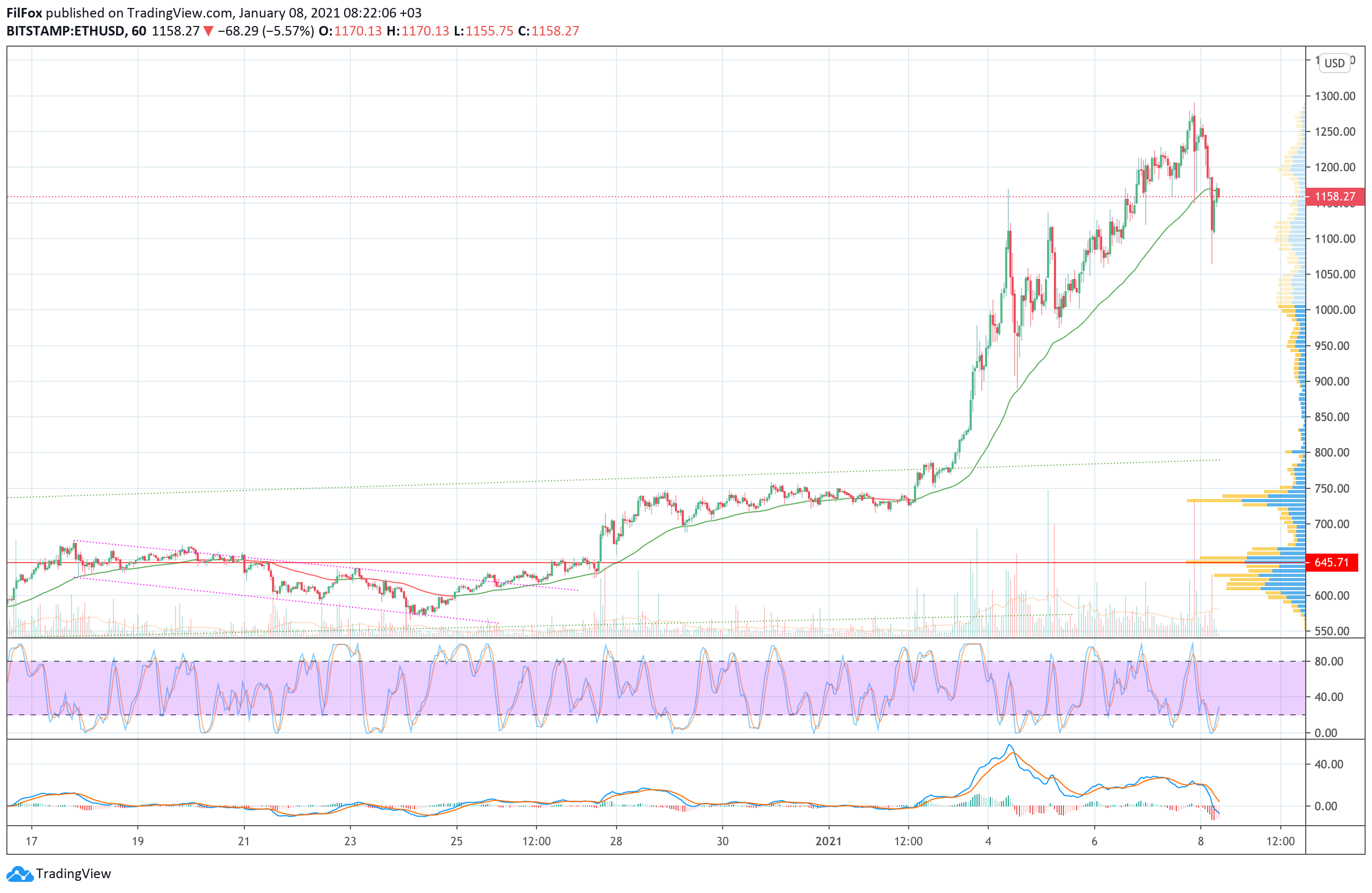 Вчера утром цена Ethereum удержалась выше отметки 1150.00 USD, а в течение дня покупатели смогли вплотную приблизится к уровню 1300.00 USD, установив новый январский максимум в точке 1291.00 USD.