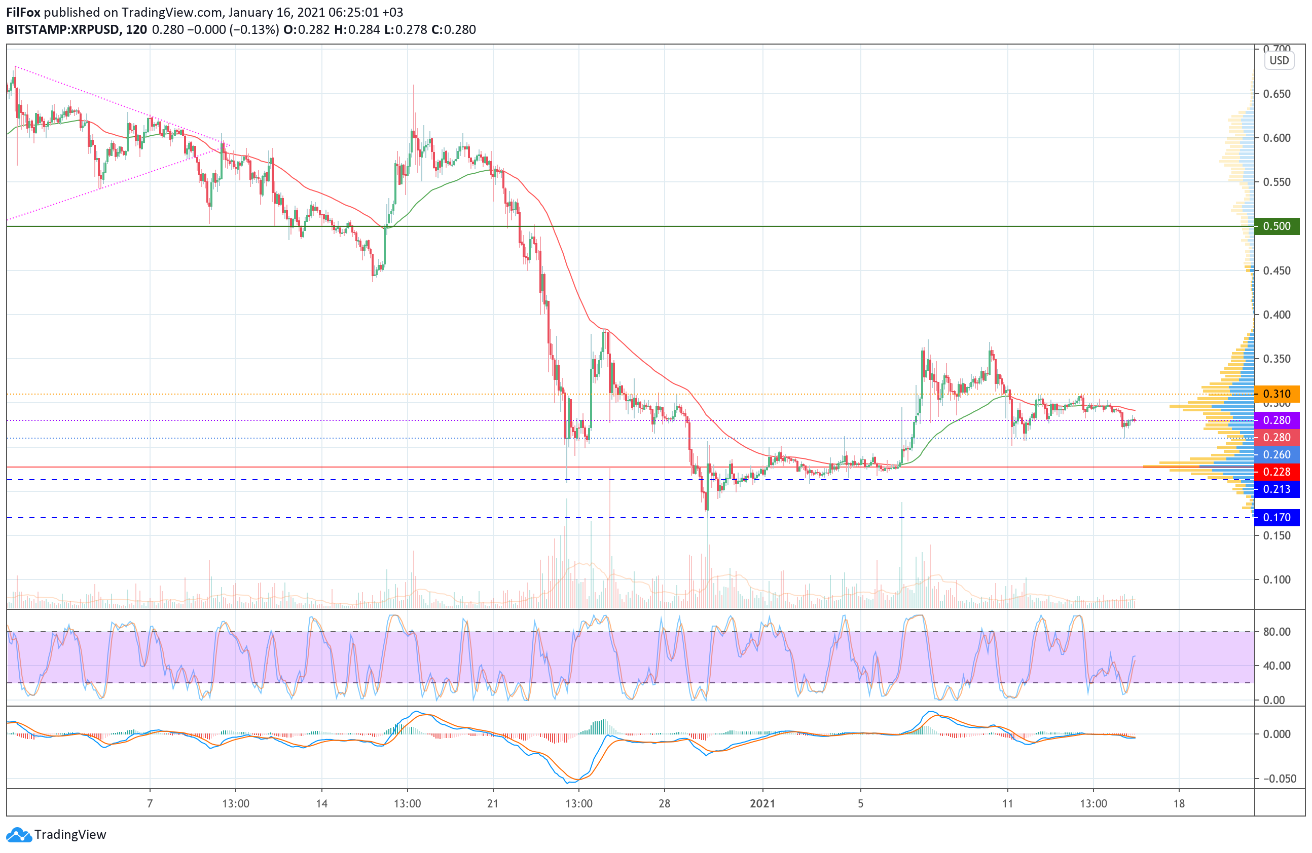 Вчера объёмы торгов по Ripple сохраннились на низком уровне. Мелкие объёмы продаж вытеснили цену XRP за пределы нижней границы (0.280 USD) узкого бокового коридора и заставили протестировать поддержку 0.260 USD.