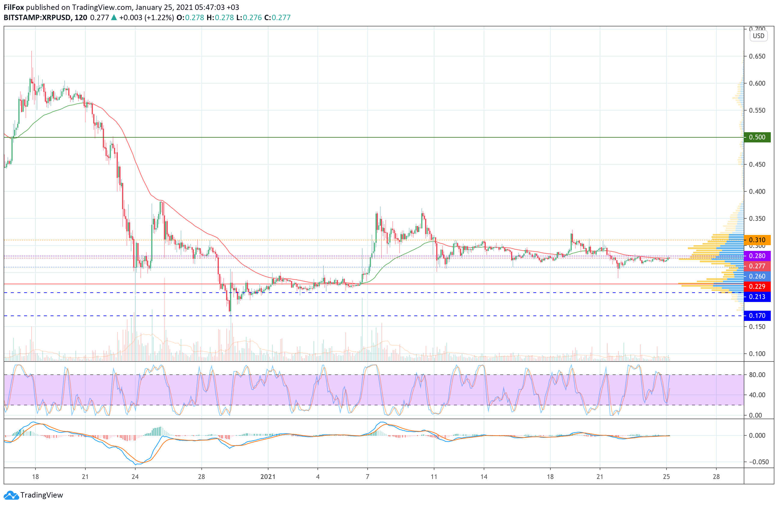 За прошедшие выходные цена Ripple не смогла преодолеть сопротивление 0.280 USD, и паре так и не удалось до конца минувшей недели закрепиться в уже привычном боковом диапазоне $0.280 - $0.310.