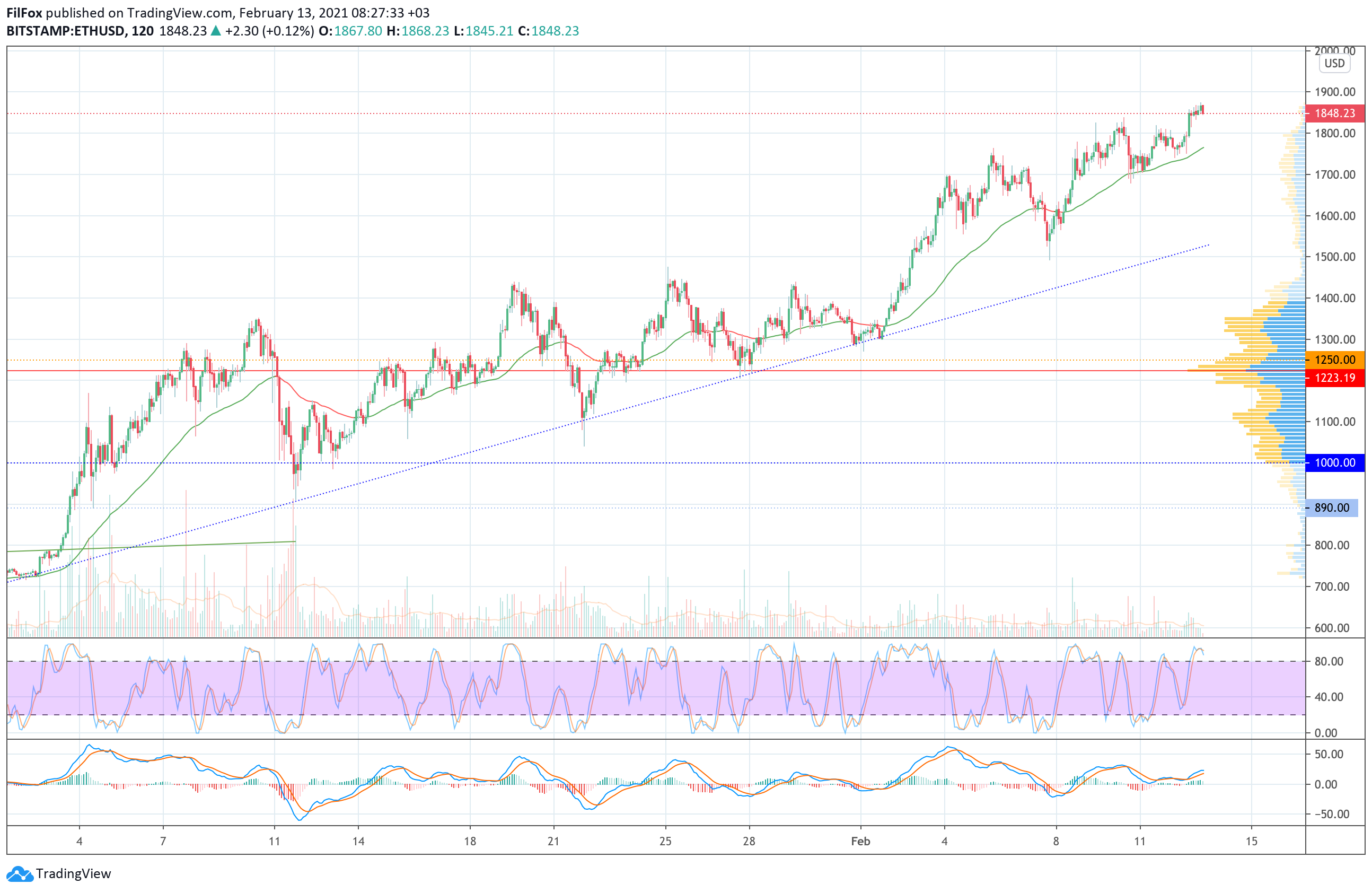 До сегодняшнего утра цена эфира обновила максимум в районе отметки 1875.00 USD, но так и не смогла протестировать это сопротивление.