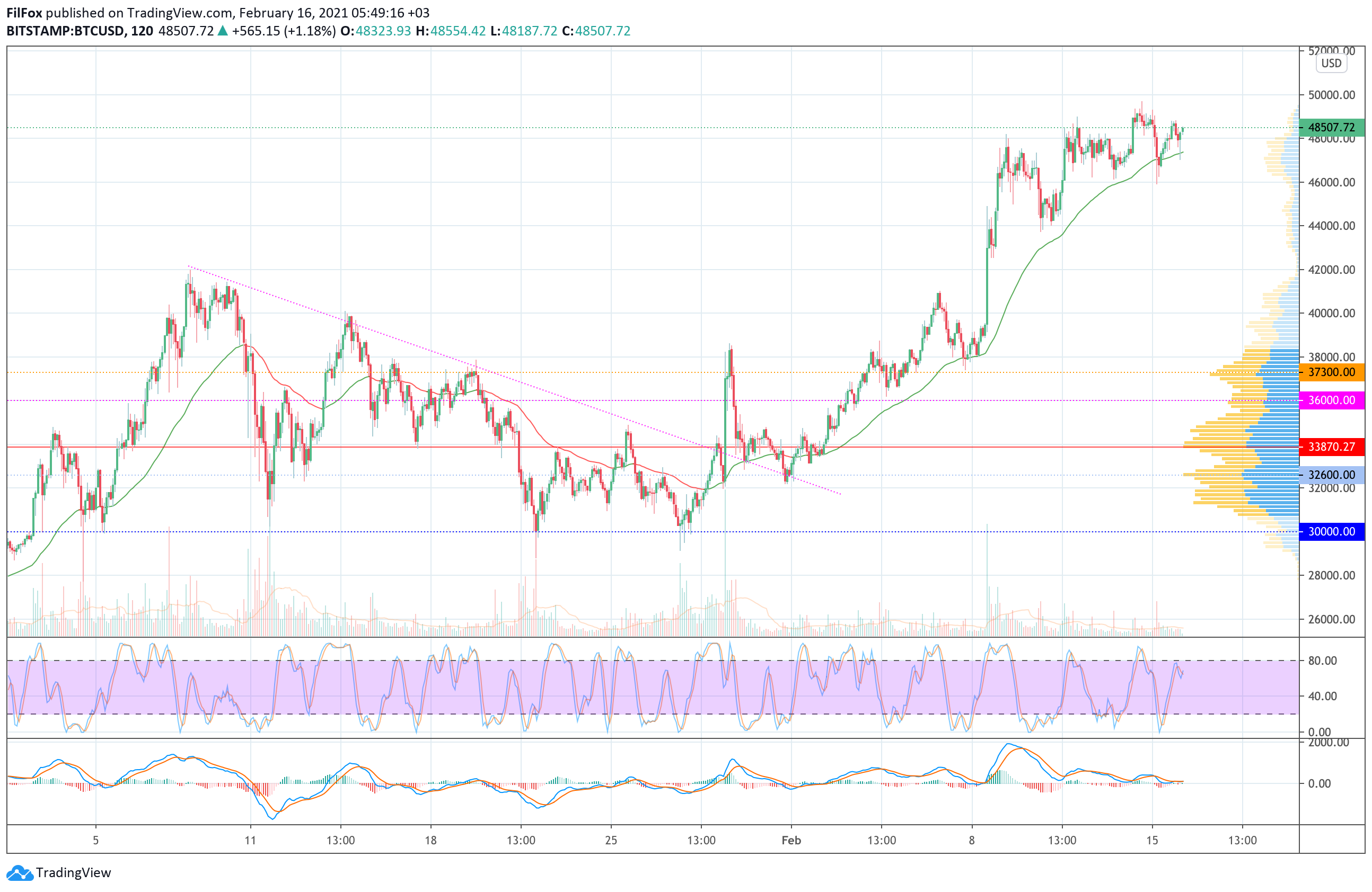 Сегодня цена Bitcoin может пробить отметку 50000.00 USD и продолжить рост к новому абсолютному максимуму.