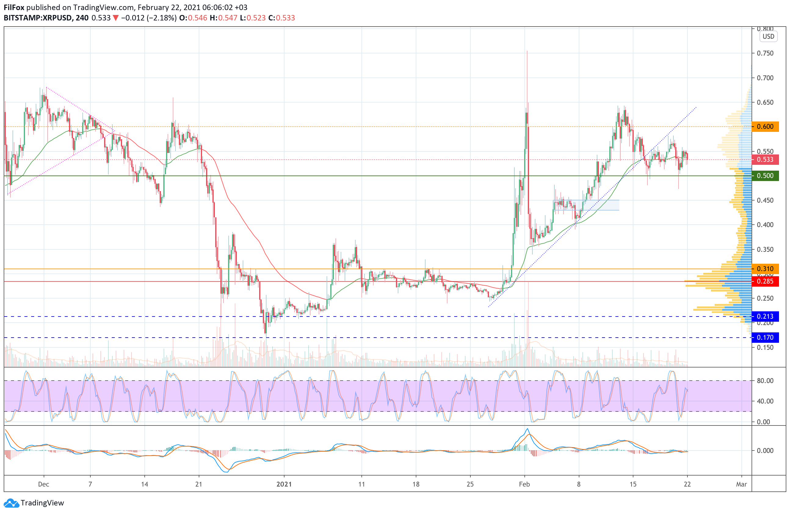 Если же сегодня покупатели смогут удержать пару в области средних цен, то во второй половине недели цена XRP восстановится выше сопротивления 0.600 USD.