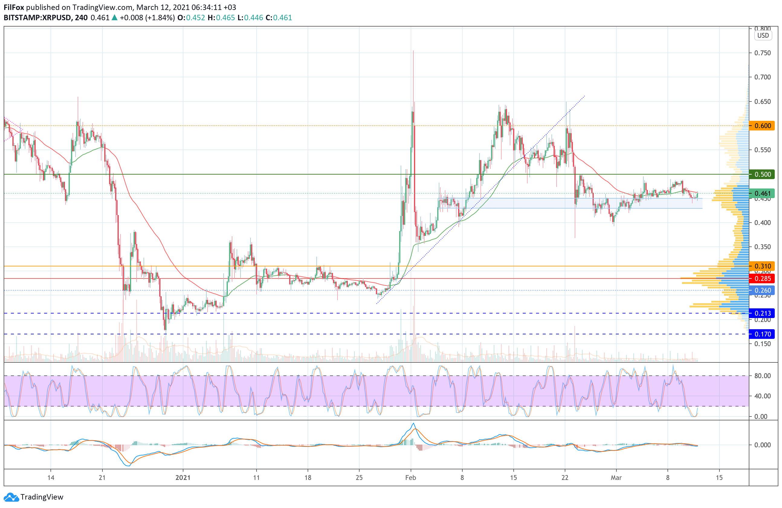 Если на крипторынке будет преобладать позитивное настроение, то и Ripple продолжит восстановление к психологической отметке 50 центов.