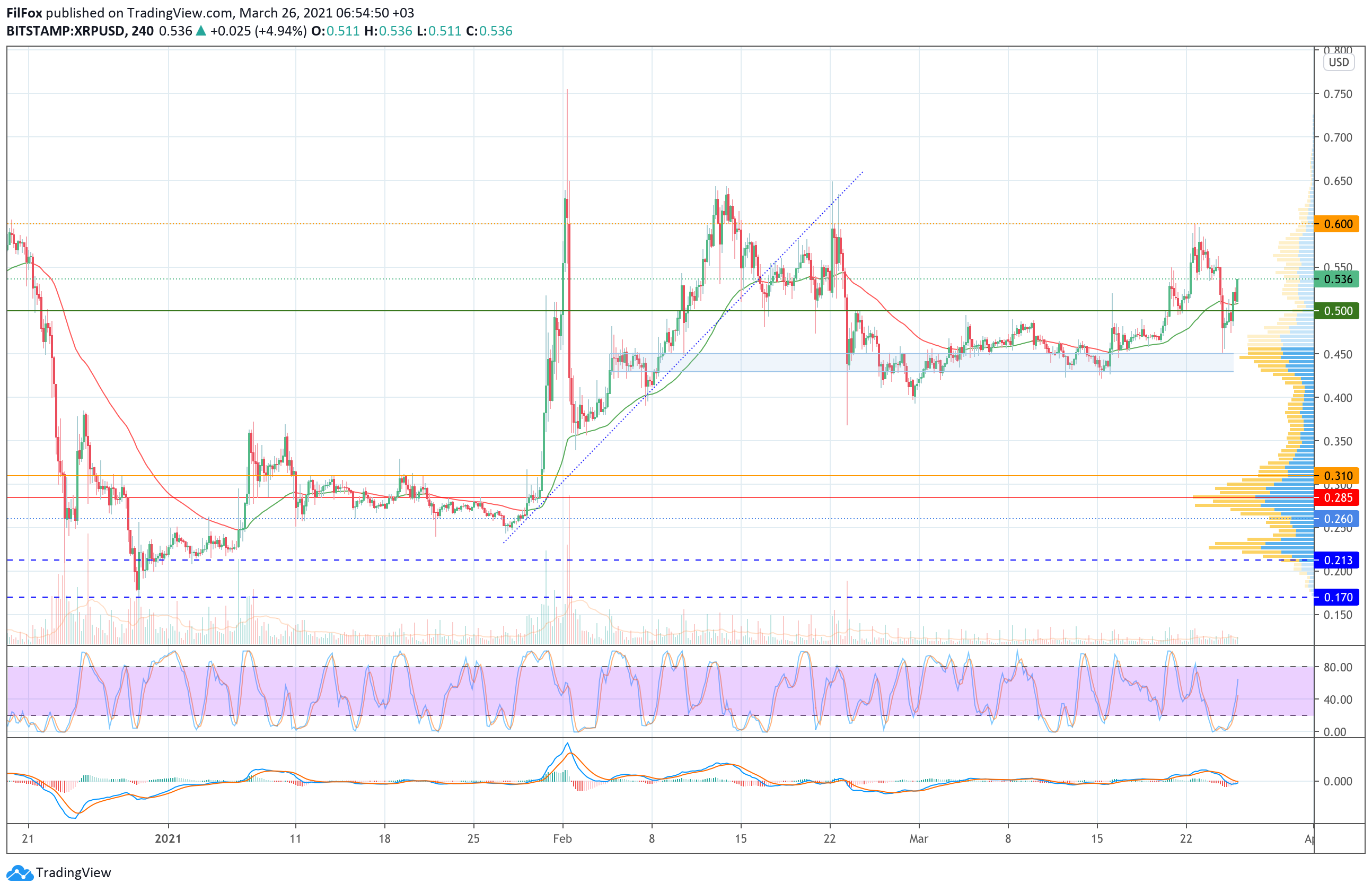 Вчера цена XRP многих удивила своей позитивной динамикой. Пара смогла восстановиться выше психологической отметки 0.500 USD и до конца дня продолжила восстановление в область средних цен.