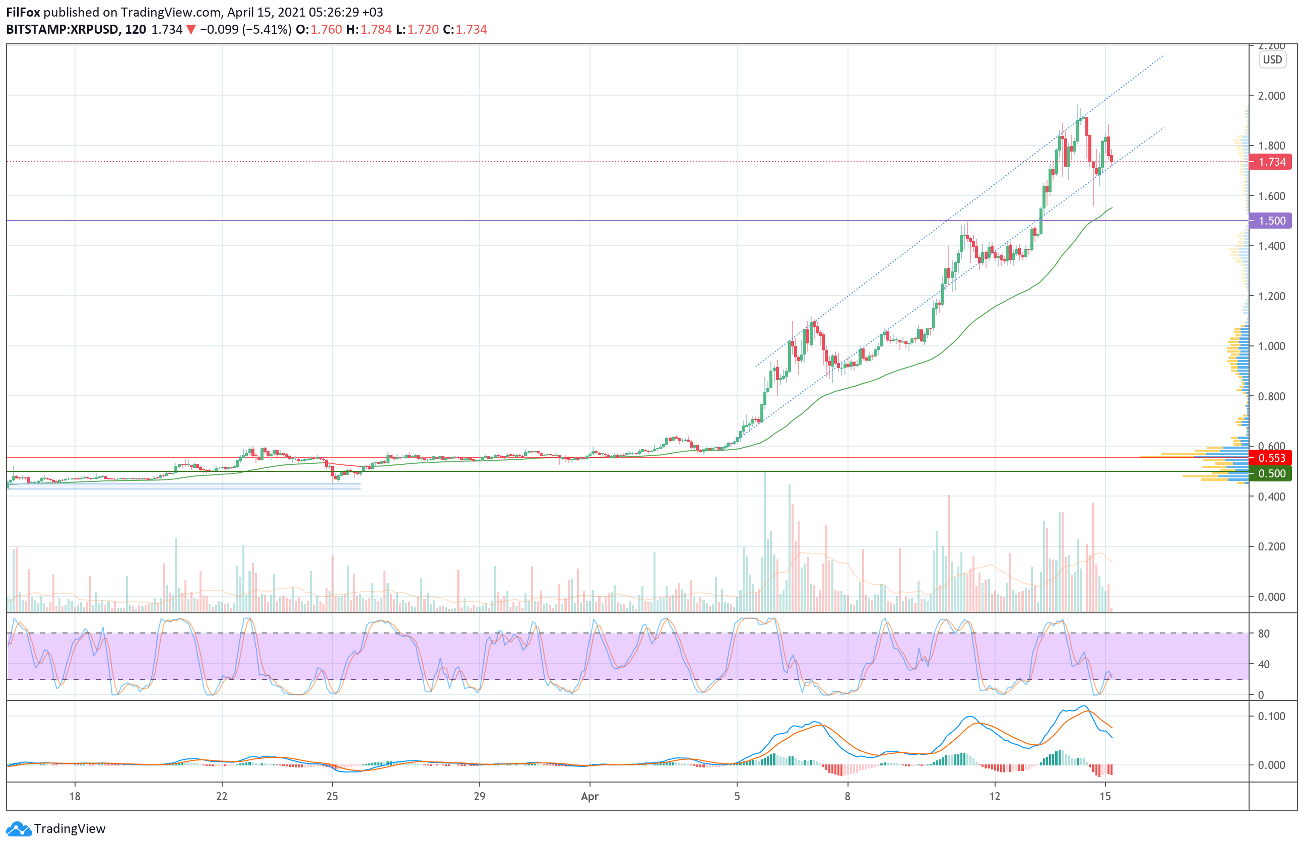 Если сегодня покупатели будут продолжать пампить цену XRP, то двухдолларовый рубеж будет преодолён.