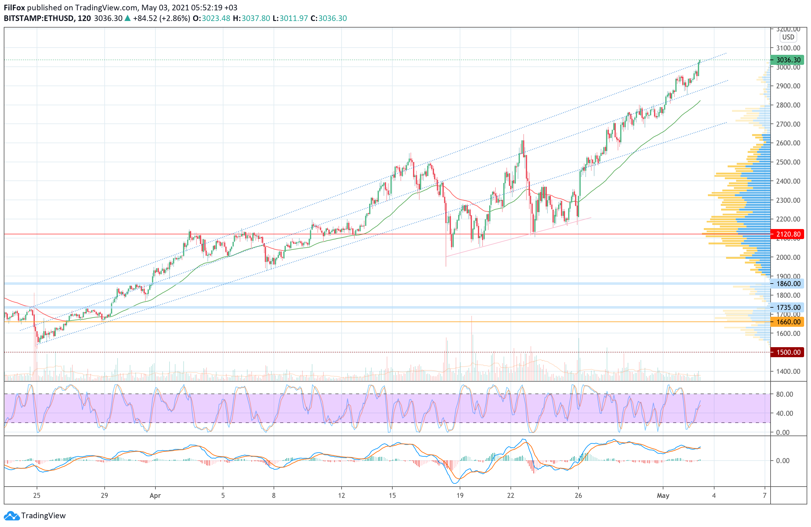 Цена Ethereum пробила психологический уровень 3000.00 USD и обновила исторический максимум.