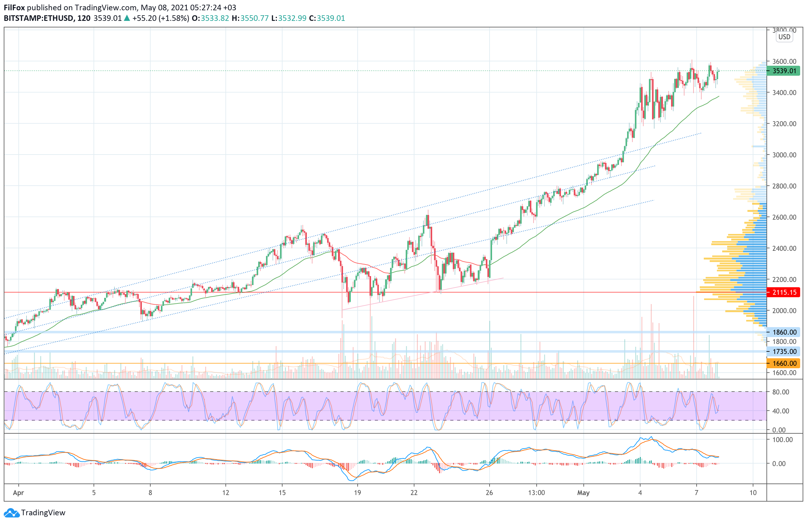 Вчера цена Ethereum не смогла обновить абсолютный максимум. Сможет ли пара ETH/USD до конца недели протестировать уровень 3700.00 USD?