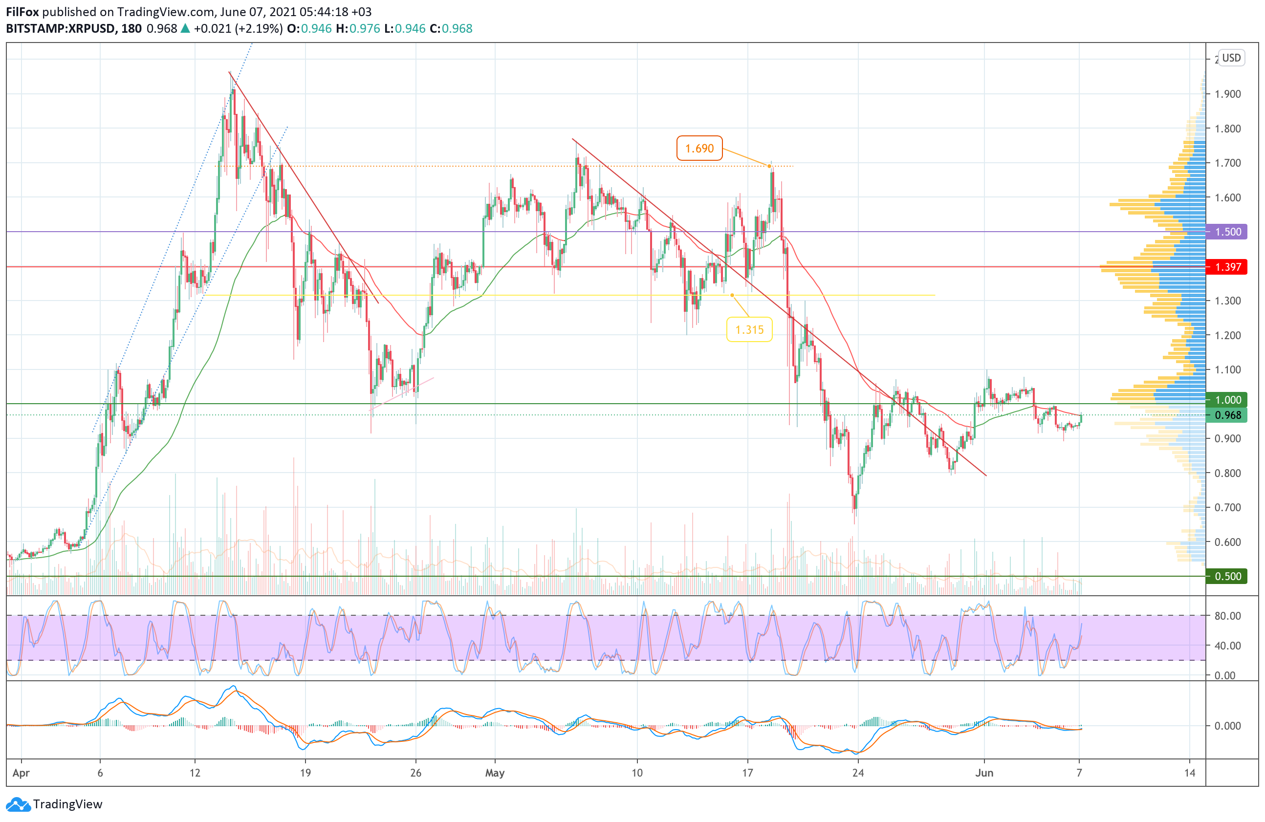 В прошлую субботу цена XRP не смогла протестировать психологическую отметку один доллар. На подходе к этому ключевому уровню цена развернулась на снижение.