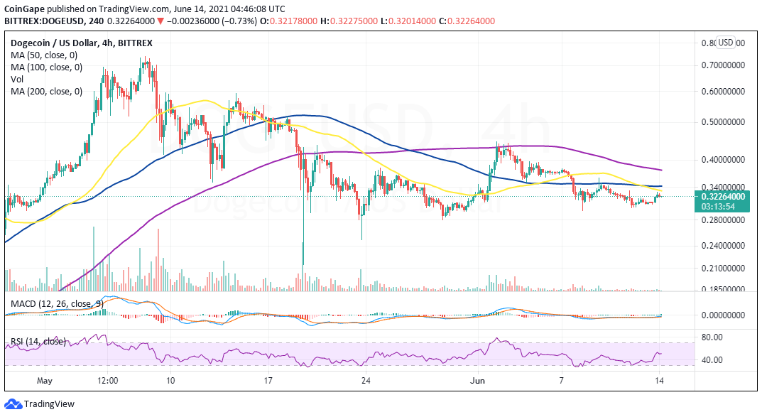 Пока продавцам не удалось продавить $0.3, покупатели будут иметь возможность пробить цену выше 100 SMA на $0.34. В таком случае цена DOGE может подняться и выше $0.4.