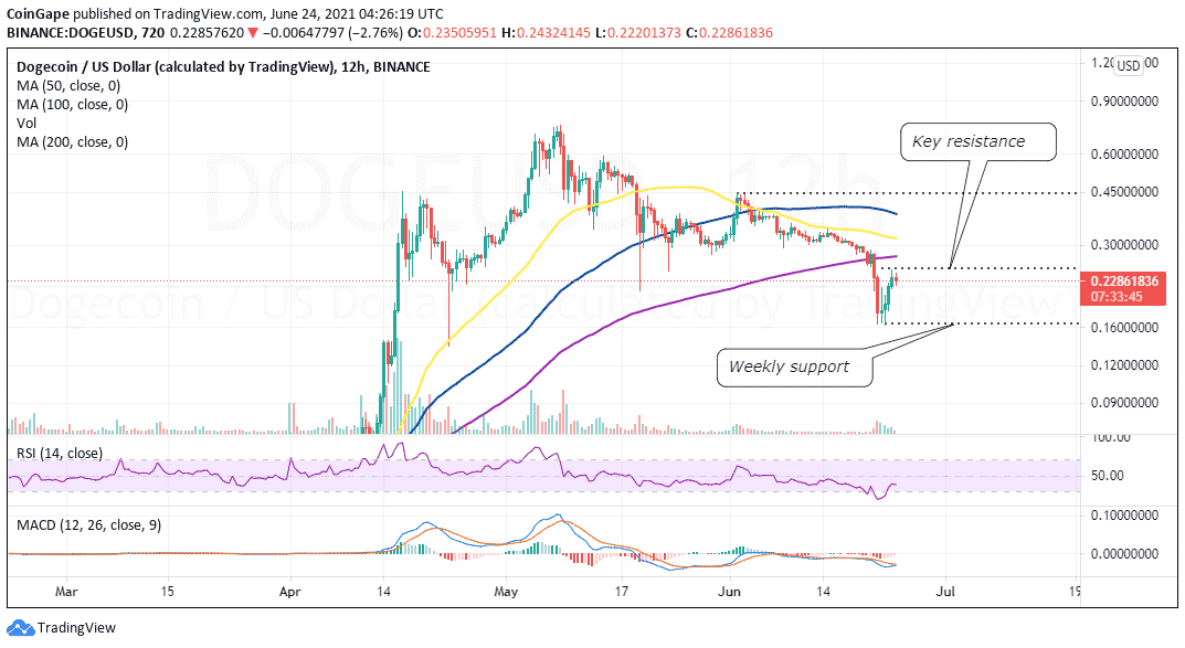 На момент написания DOGE торгуется около $0.228. Ближайший уровень поддержки расположен около $0.2. Ближайший уровень сопротивления - $0.25. Если быки продавят сопротивление, это откроет им путь к $0.45.