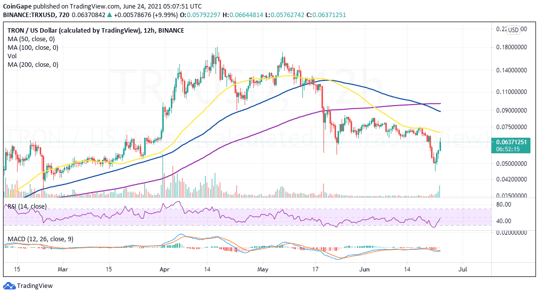 Цена TRON также восстановилась после падения к $0.045. Прорыв к $0.05 спровоцировал ордера на покупку, подтолкнув TRX к $0.06.