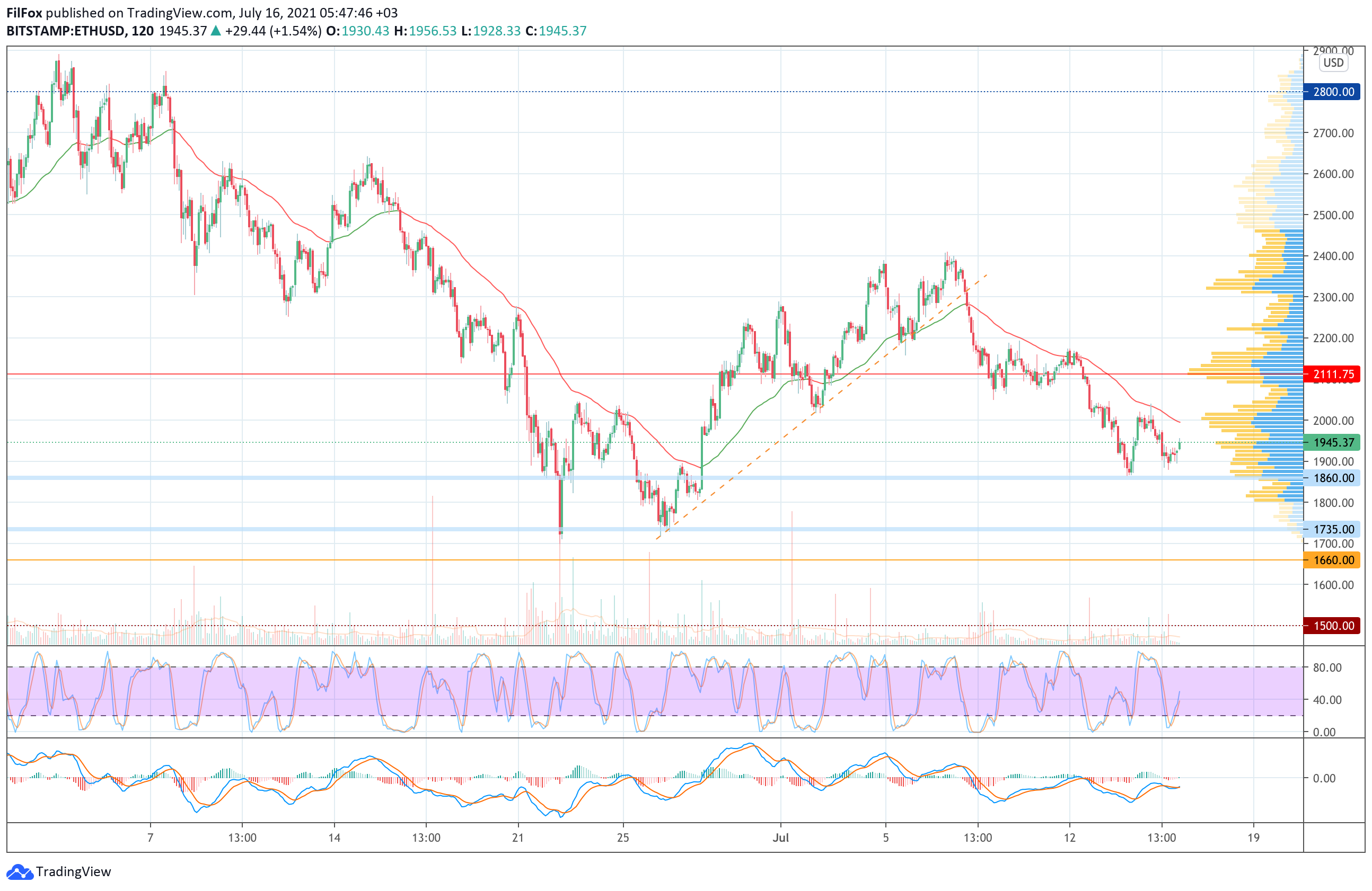 На сегодняшнее утро объёмы покупок пока очень мелкие и восстановление идёт медленными темпами, но если покупатели нарастят объёмы, то в течение дня цена эфира сможет вернуться к уровню две тысячи долларов за монету.