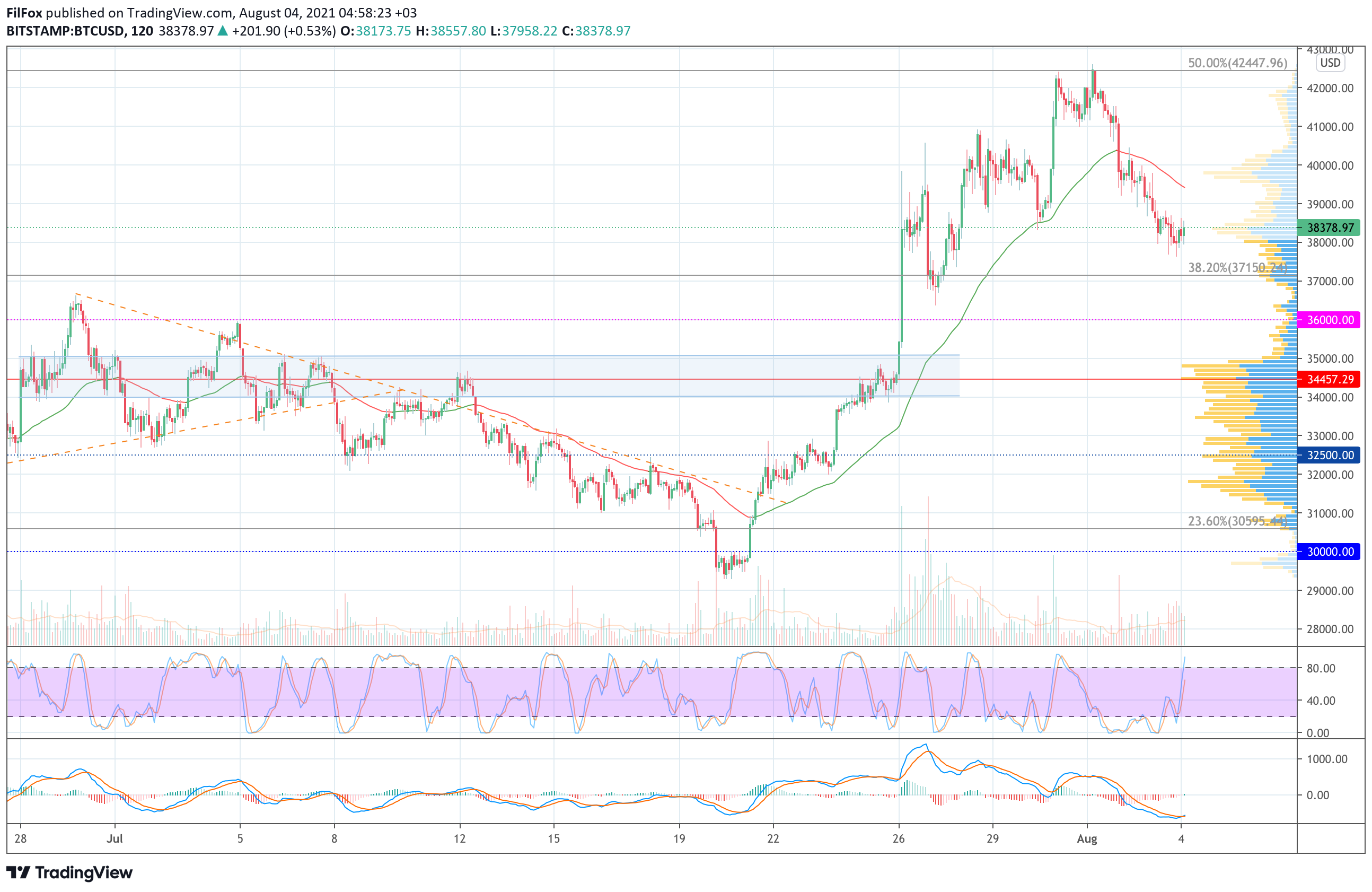 Сегодня ночью покупатели активно выкупали Bitcoin. Объёмы торгов превысили средний уровень и цена биткоина восстановилась выше 38000.00 USD.