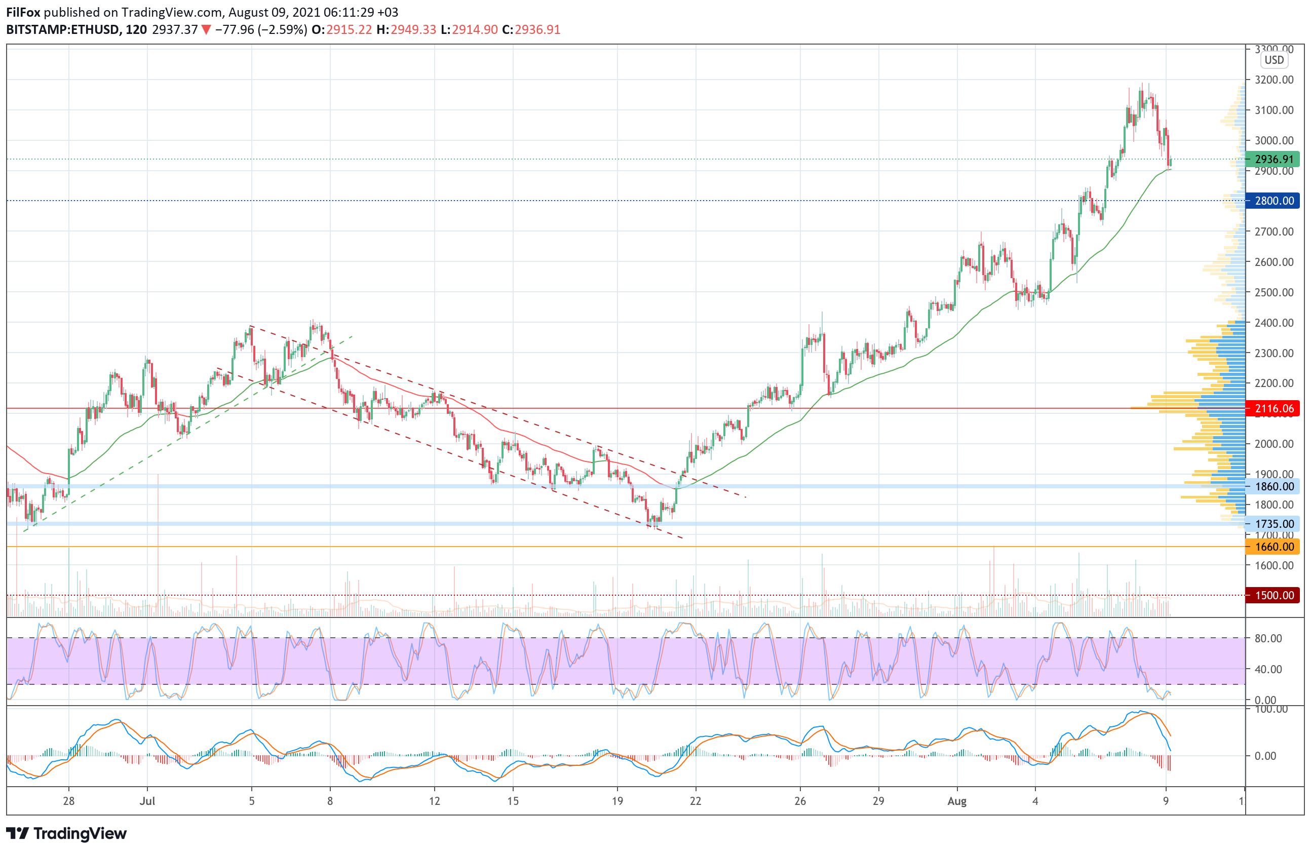 В минувшую субботу цена Ethereum смогла продолжить рост. Быки пробили мощное психологическое сопротивление 3000.00 USD, а в воскресенье обновили летний максимум на отметке 3190.00 USD.