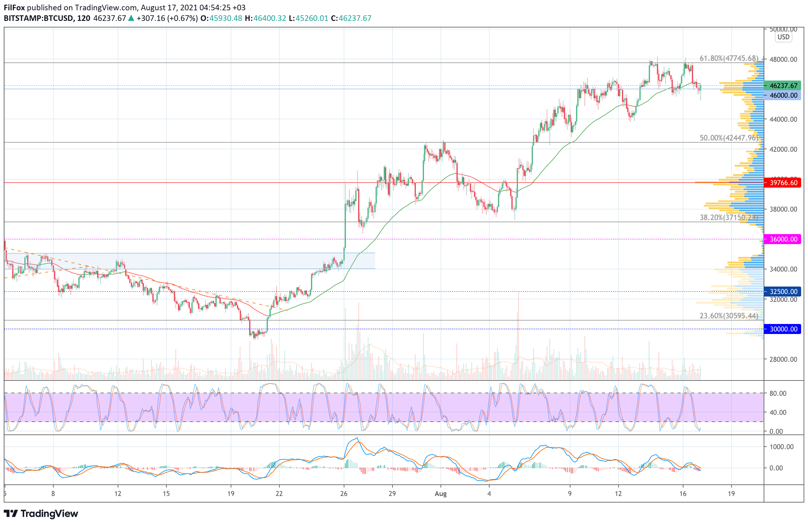 Цена Bitcoin не смогла пробиться выше сопротивления 48000.00 USD. Будут ли сегодня новые попытки прорыва?