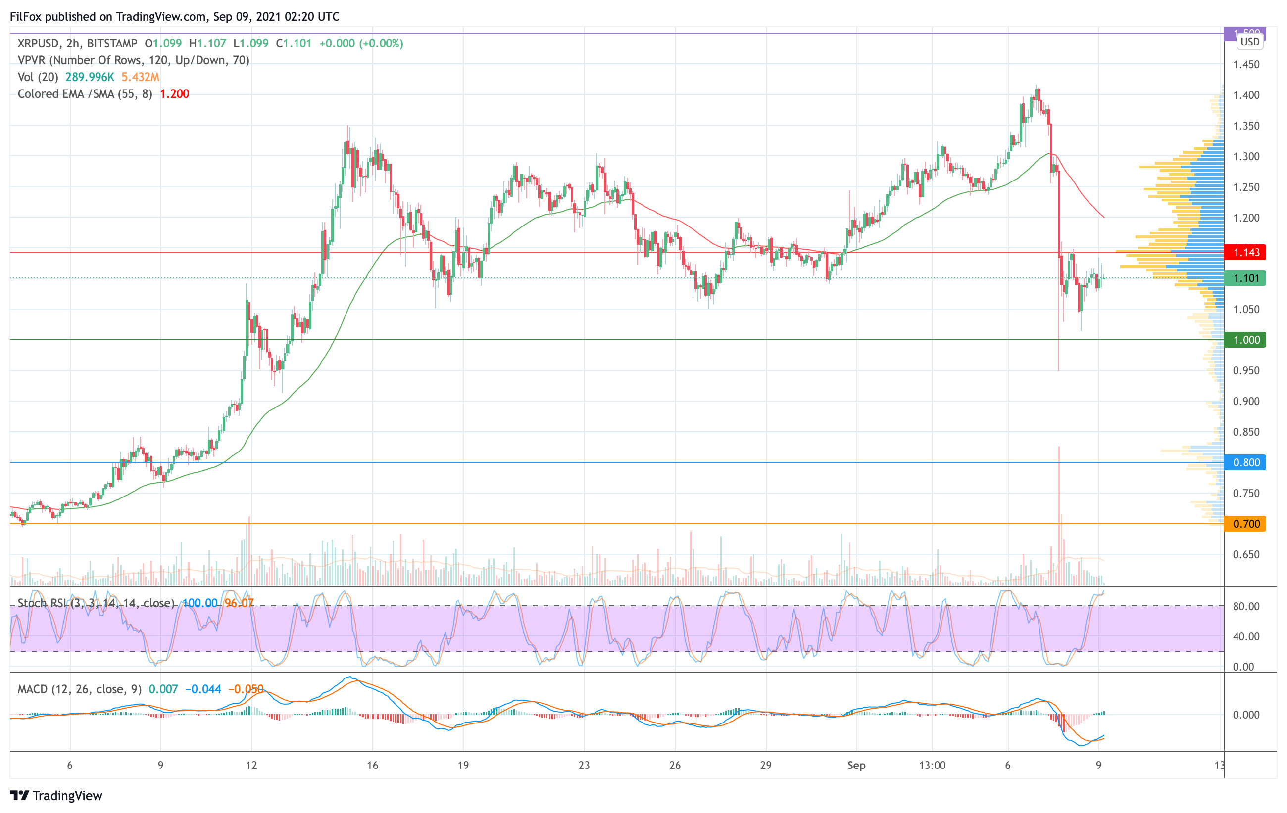 Вчера объёмы продаж Ripple были ниже среднего уровня, и снижение цены XRP остановилось в точке 1.015 USD. У продавцов не хватило сил протестировать психологический уровень 1.00 USD.
