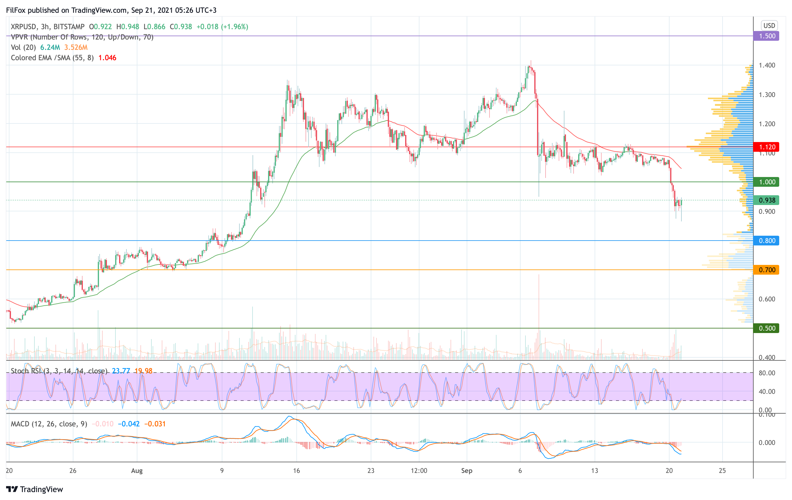 Вчера днём цена XRP проколола поддержку 0.900 USD, установив месячный минимум в точке 0.875 USD. Ночью он обновился до уровня 0.866 USD.