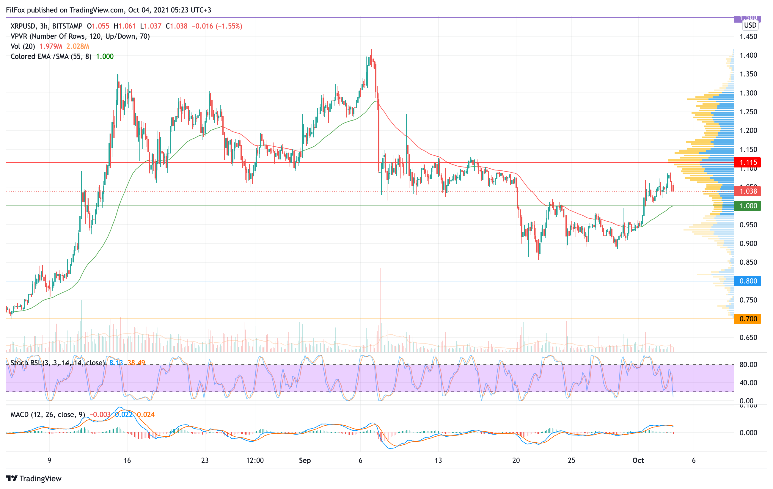 В прошедшую субботу продавцы не смогли протестировать уровень 1.00 USD, и до конца дня цена XRP восстановилась к новому октябрьскому максимуму в точке 1.073 USD. В воскресенье месячный максимум удалось обновить до отметки 1.089 USD, но протестировать сопротивление 1.100 USD так и не получилось.