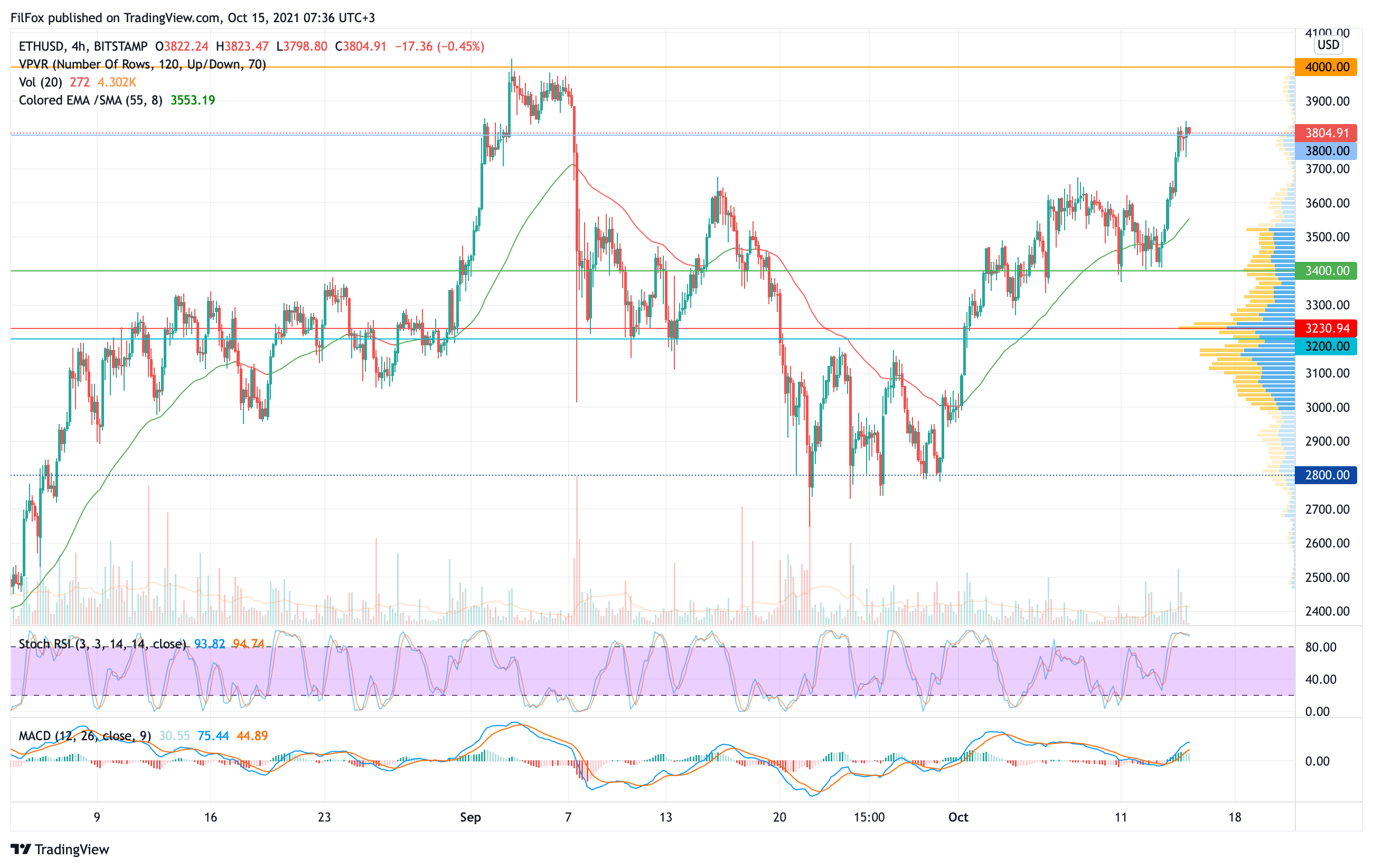 Вчера днём покупатели смогли нарастить объёмы покупок, и цена Ethereum взлетела выше максимумов октября и сентября.