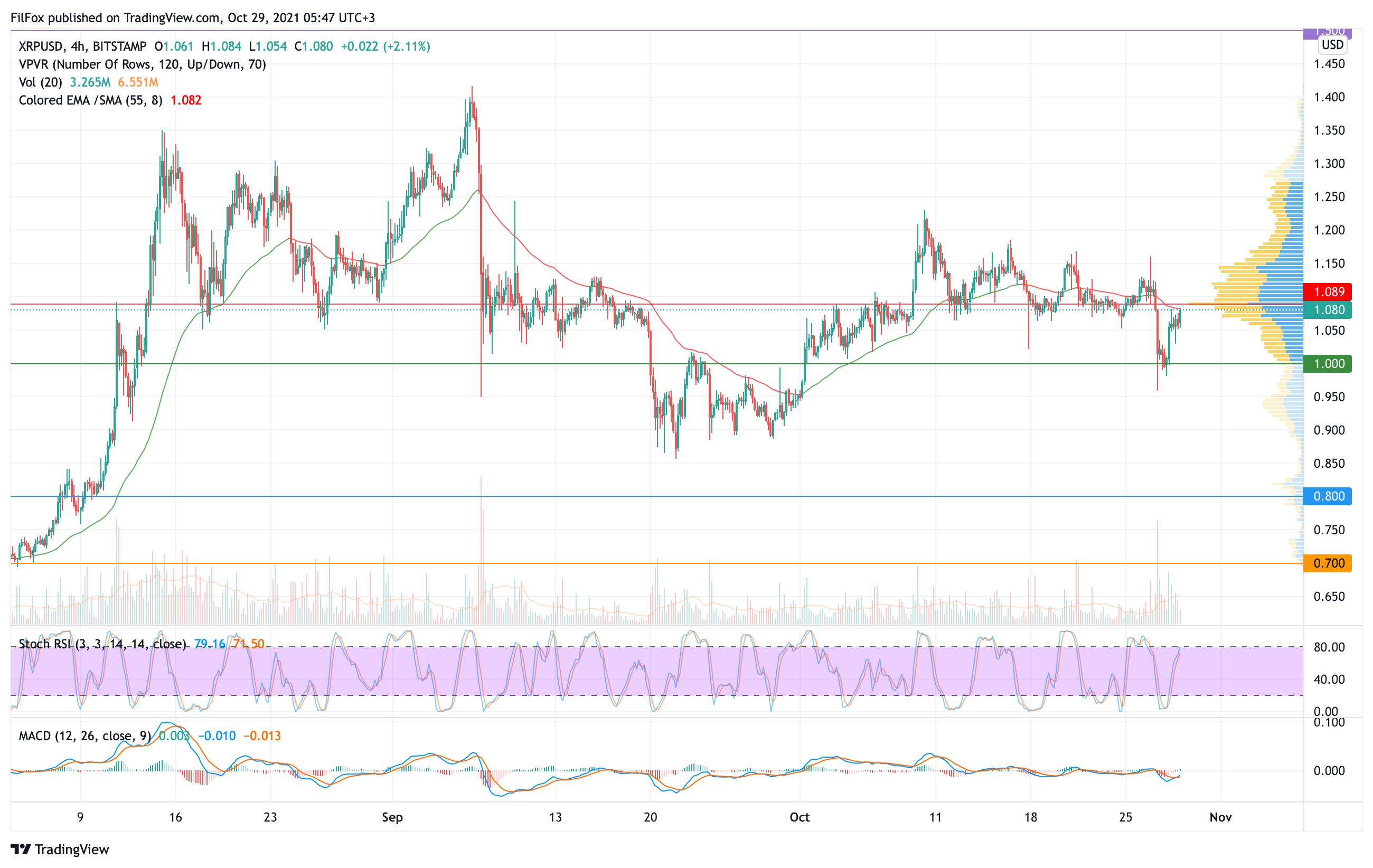 Если сегодня на крипторынке будут преобладать позитивные настроения, то восстановление пары XRP/USD может продолжиться в область 1.250 USD.