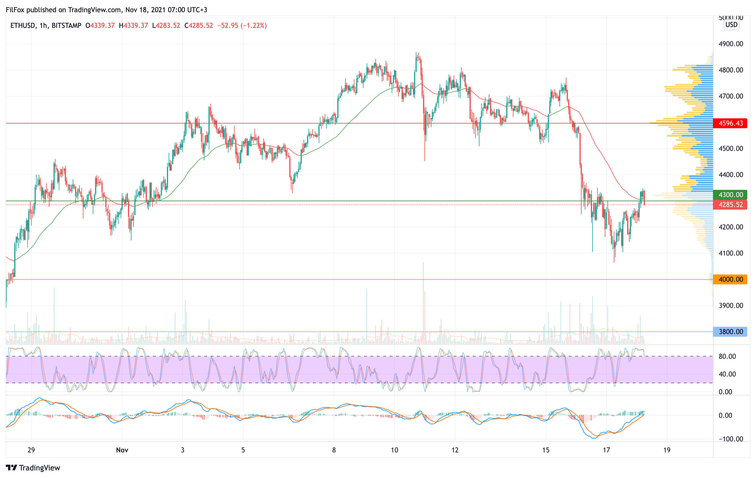 После ноябрьского минимума в районе отметки 4065.00 USD, цена Ethereum смогла восстановиться выше уровня 4300.00 USD. Однако, удержаться над ним пока не удаётся.