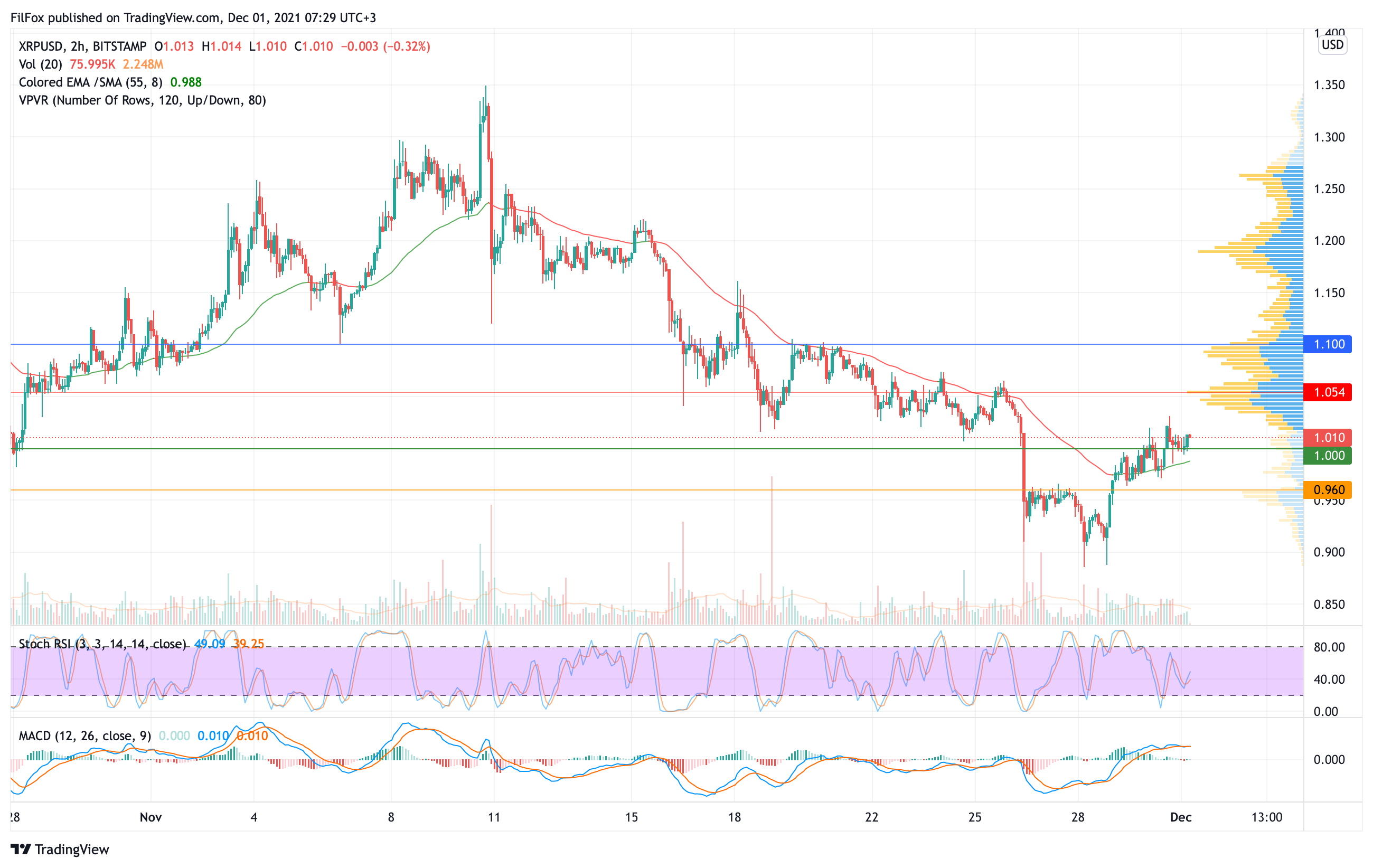 Вчера цена XRP удержалась выше уровня средних цен и закрепилась над психологической отметкой 1.00 USD.
