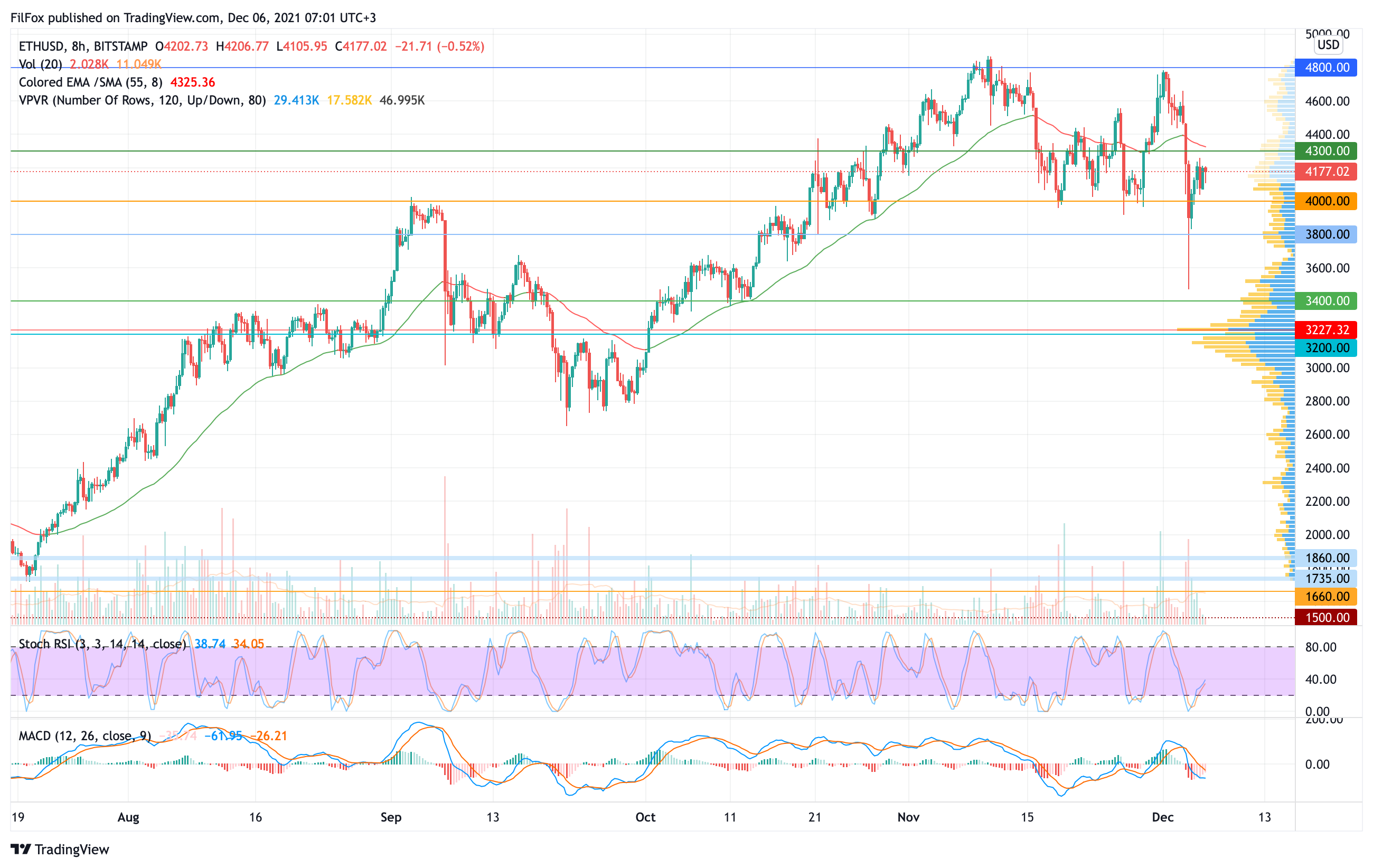 В прошедшую субботу цена Ethereum восстановилась выше психологической отметки 4000.00 USD, а в воскресенье восстановление продолжилось вплотную к уровню 4300.00 USD. Локальный максимум обозначен в районе отметки 4258.00 USD.