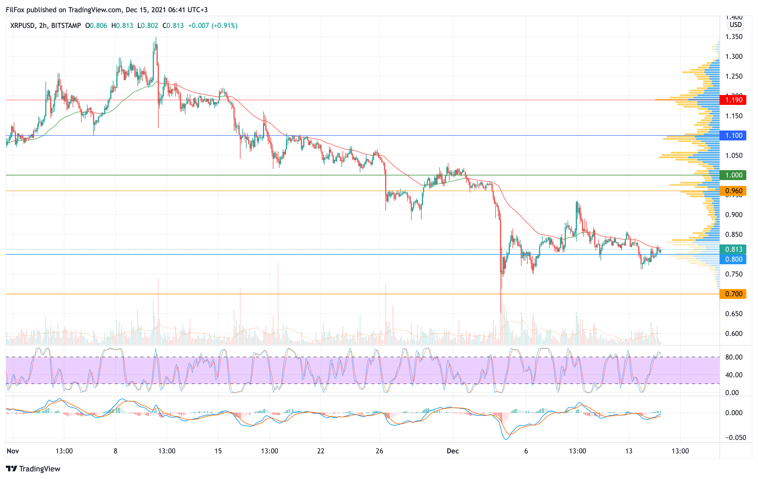 Если цена Ripple восстановится выше уровня средних цен при поддержке крупного покупателя, то возможен рост к сопротивлению 0.900 USD.
