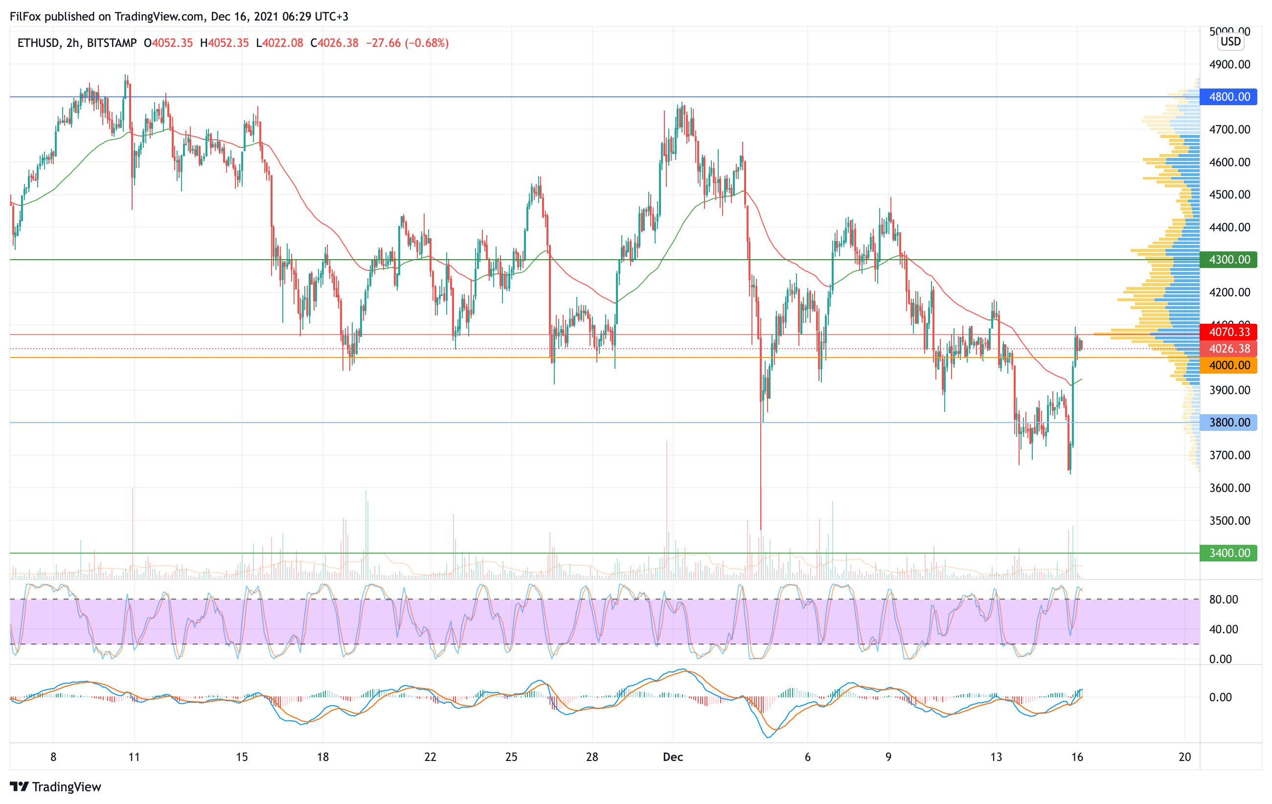 Вчера утром объёмы торгов по эфиру были очень низкими. Днём медведи нарастили объёмы продаж и откатили цену ETH в район отметки 3640.00 USD.