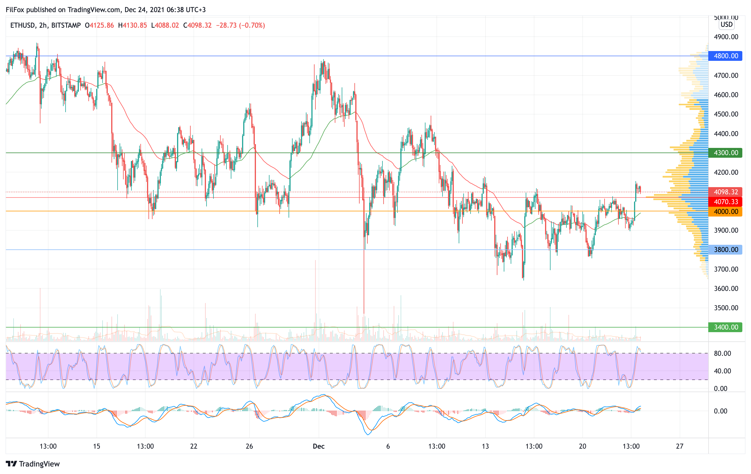 За минувшую ночь цена немного откатилась, но покупатели готовы продолжить восстановление. Полагаем, что в случае очередного бычьего импульса цена эфира может протестировать сопротивление 4300.00 USD.