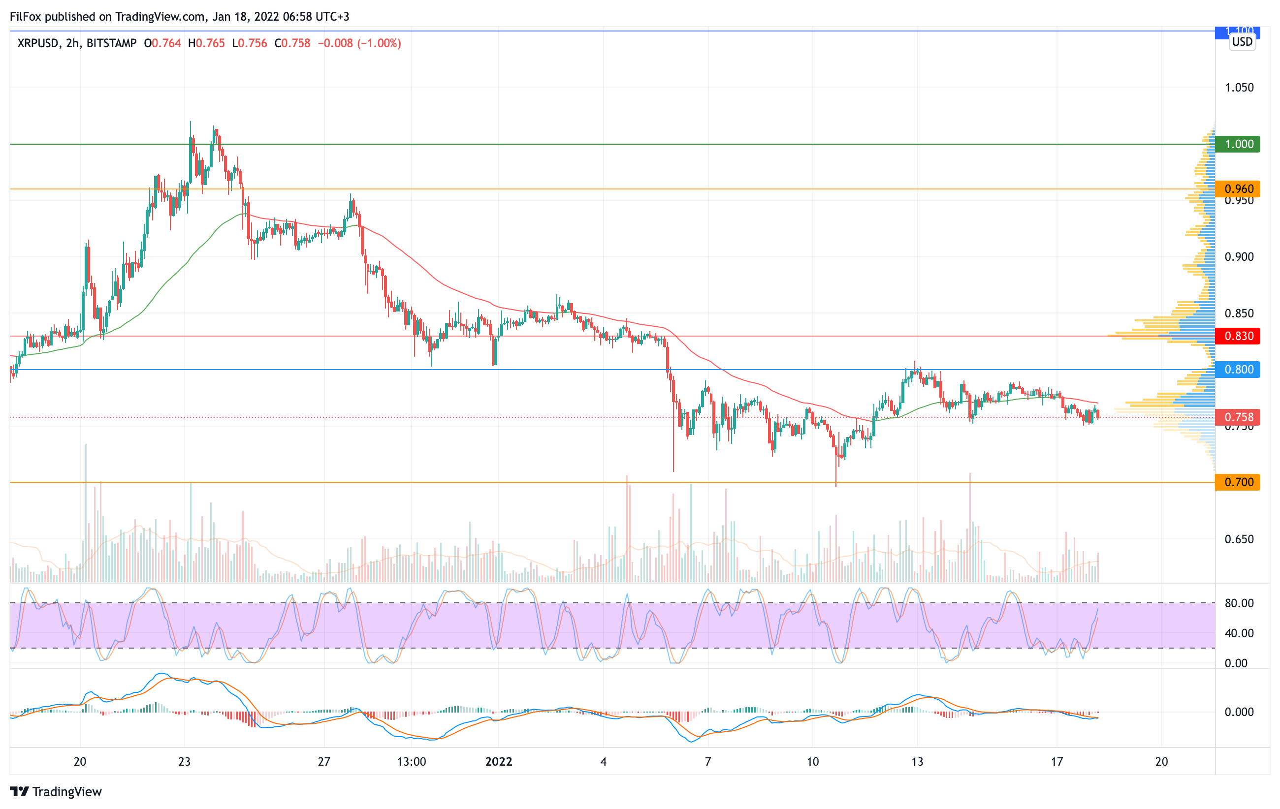 Вчера цена XRP откатилась ниже скользящей средней EMA55 и в течение дня пара уже не смогла восстановиться выше этого уровня средних цен.
