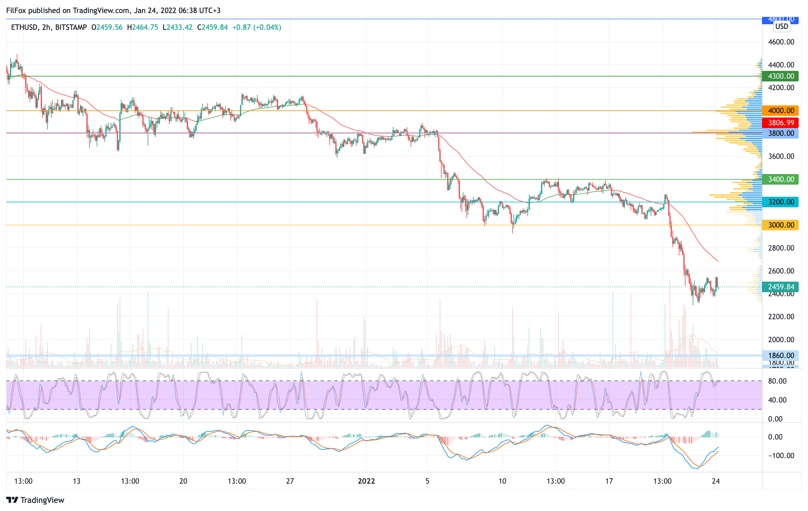 В субботу цена Ethereum обновила январский минимум в точке 2300.00 USD.