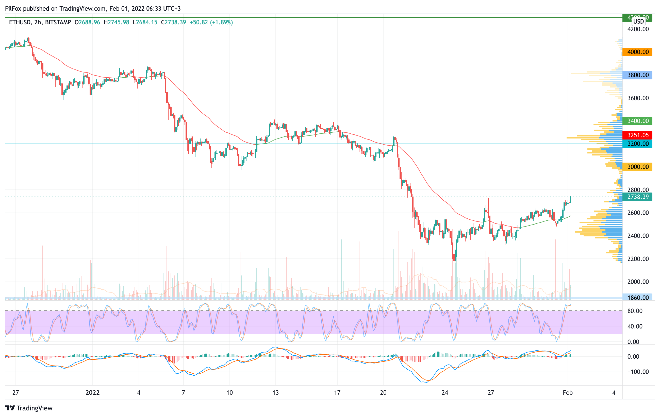 Вчера в течение дня цена Ethereum постепенно восстановилась в зону недельного максимума. Рост был поддержан крупными объёмами.